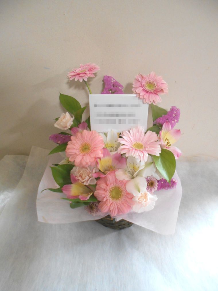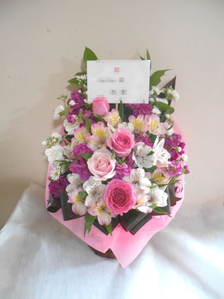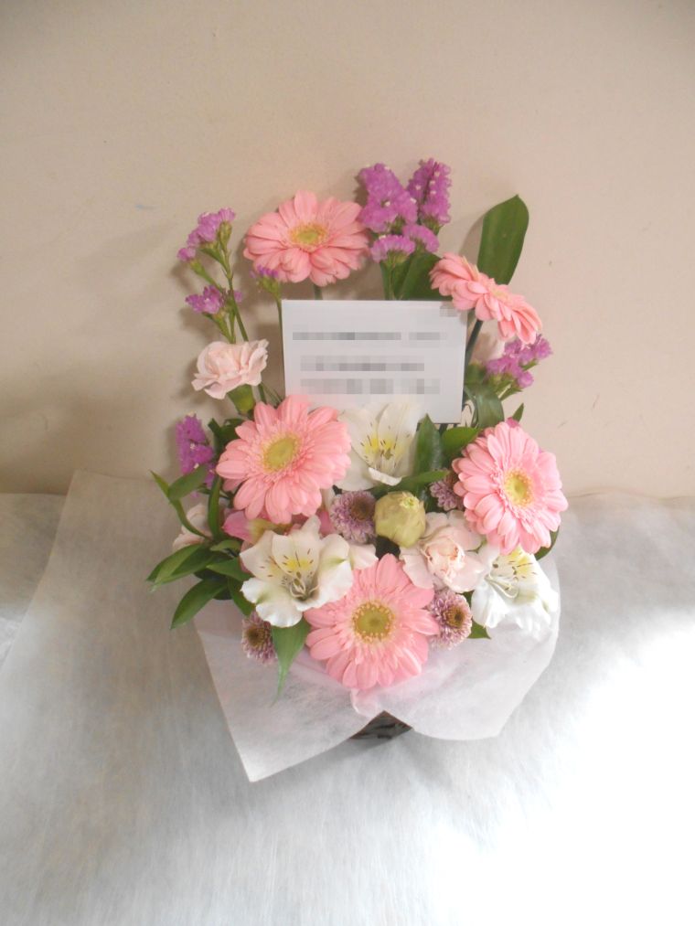 アレンジメントの実際にお届けした写真です。花秘書では発送前に写真をメールで送信致しますので安心して大切な顧客や取引様へのギフトにご利用頂けます。