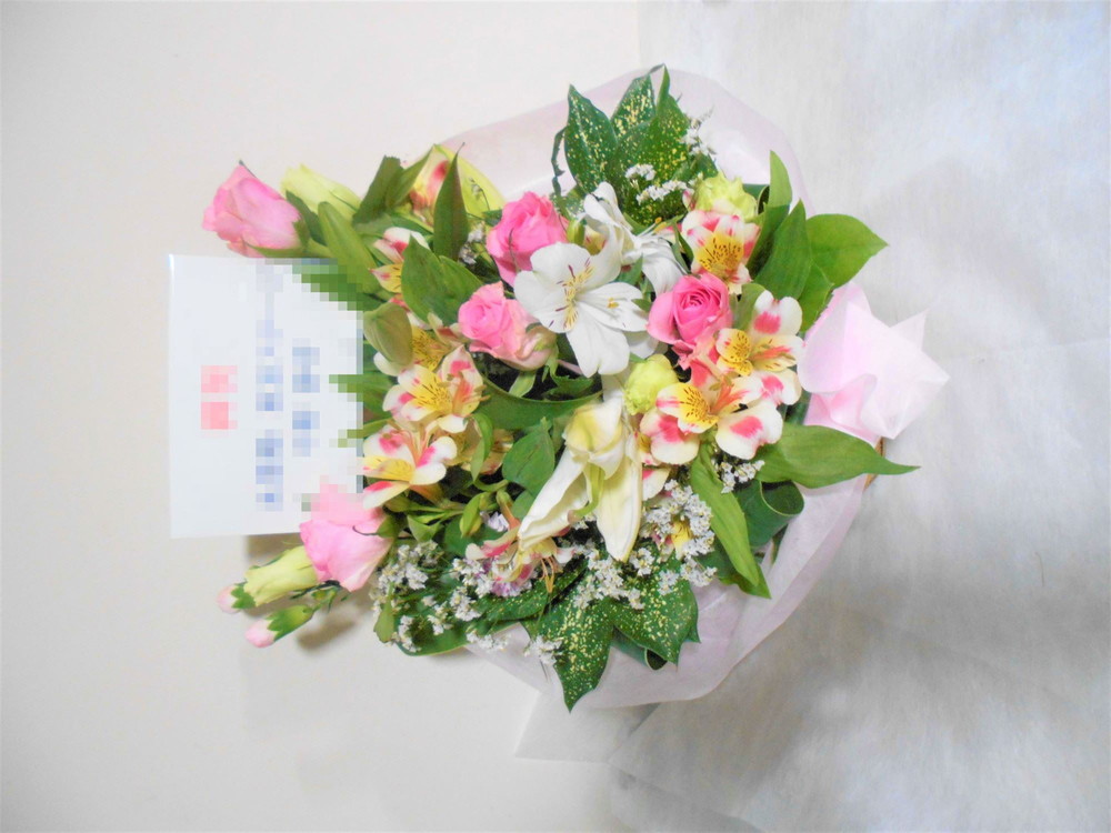 アレンジメントの実際にお届けした写真です。花秘書では発送前に写真をメールで送信致しますので安心して大切な顧客や取引様へのギフトにご利用頂けます。