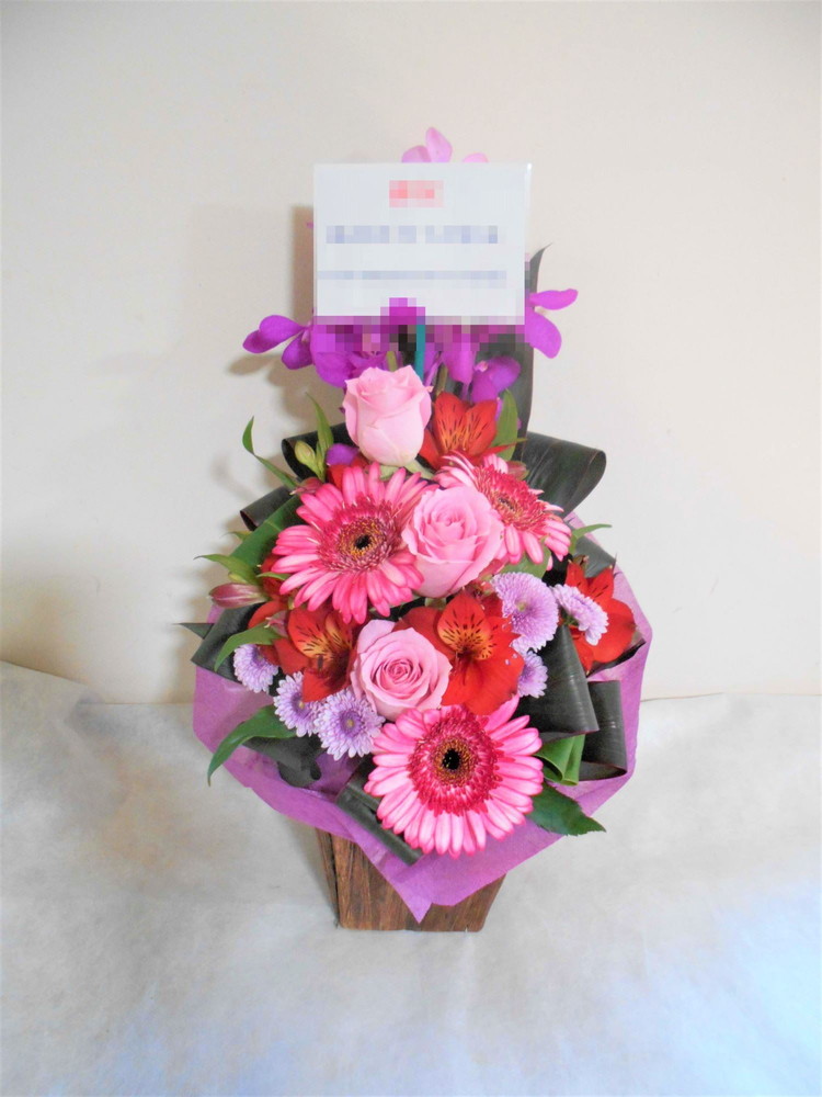 この写真は、実際にお届けさせていただいたアレンジメントです