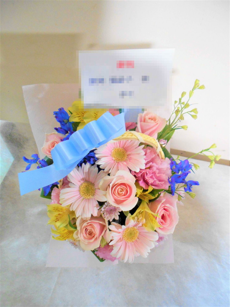 この写真は、実際にお届けさせていただいたアレンジメントです