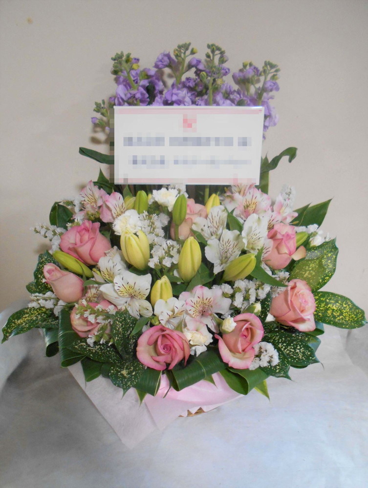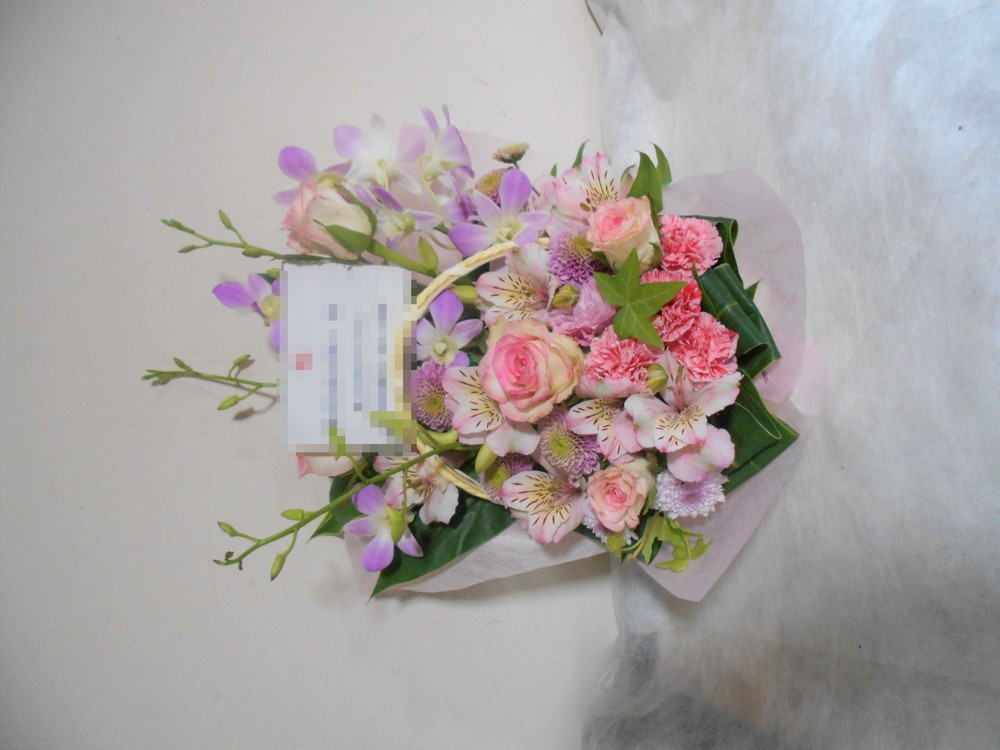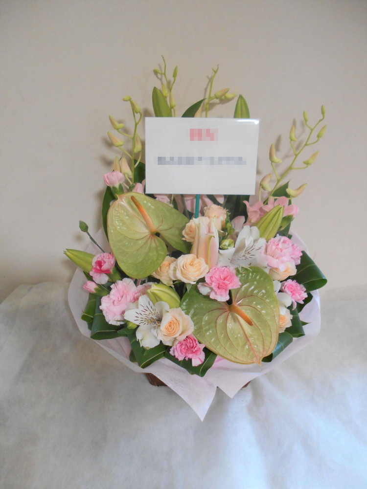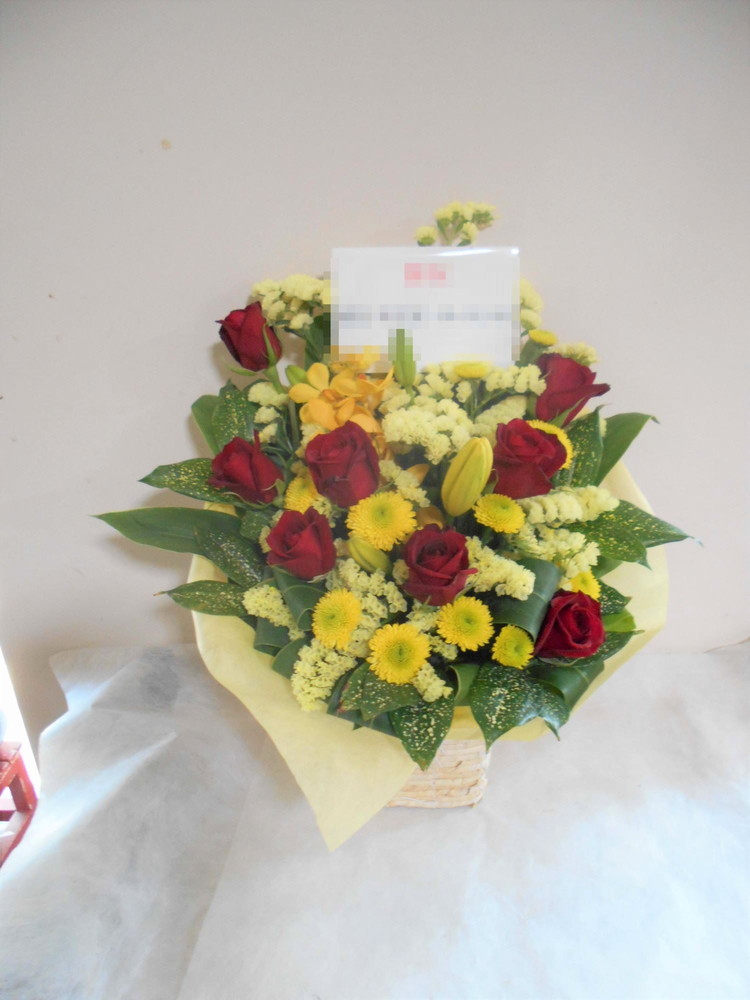 アレンジメントの実際にお届けした写真です。花秘書では発送前に写真をメールで送信致しますので安心して大切な顧客や取引様へのギフトにご利用頂けます。