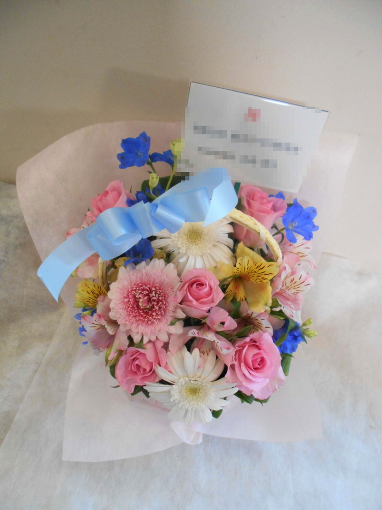 この写真は、実際にお届けさせていただいたアレンジメントです