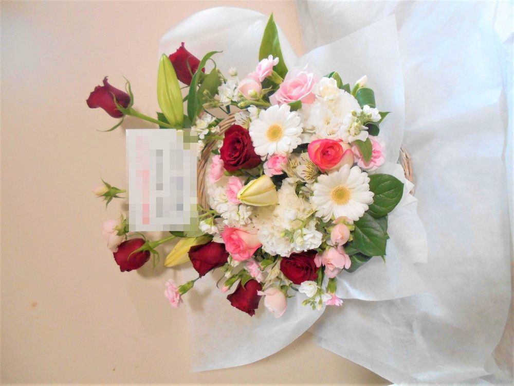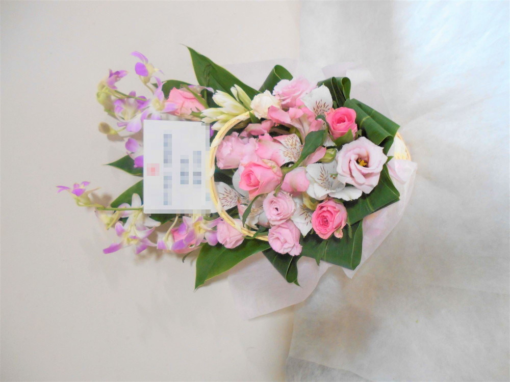 アレンジメントの実際にお届けした写真です。花秘書では発送前に写真をメールで送信致しますので安心して大切な顧客や取引様へのギフトにご利用頂けます。