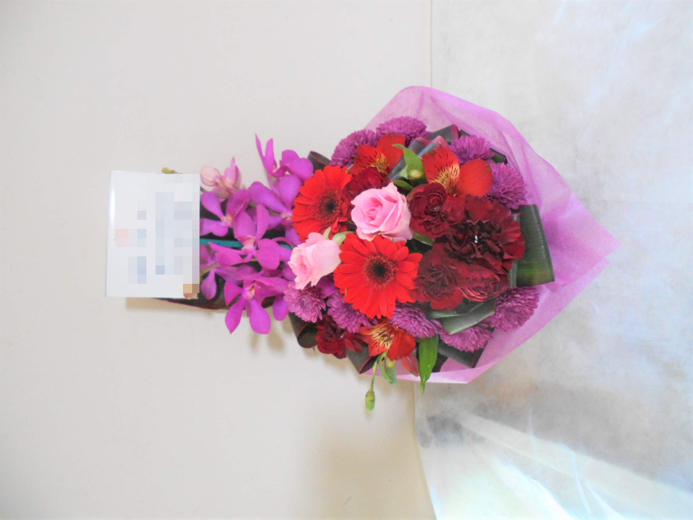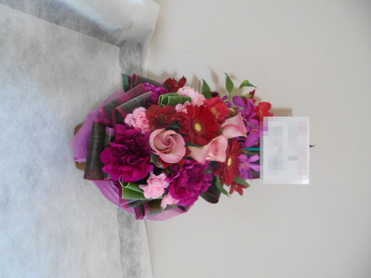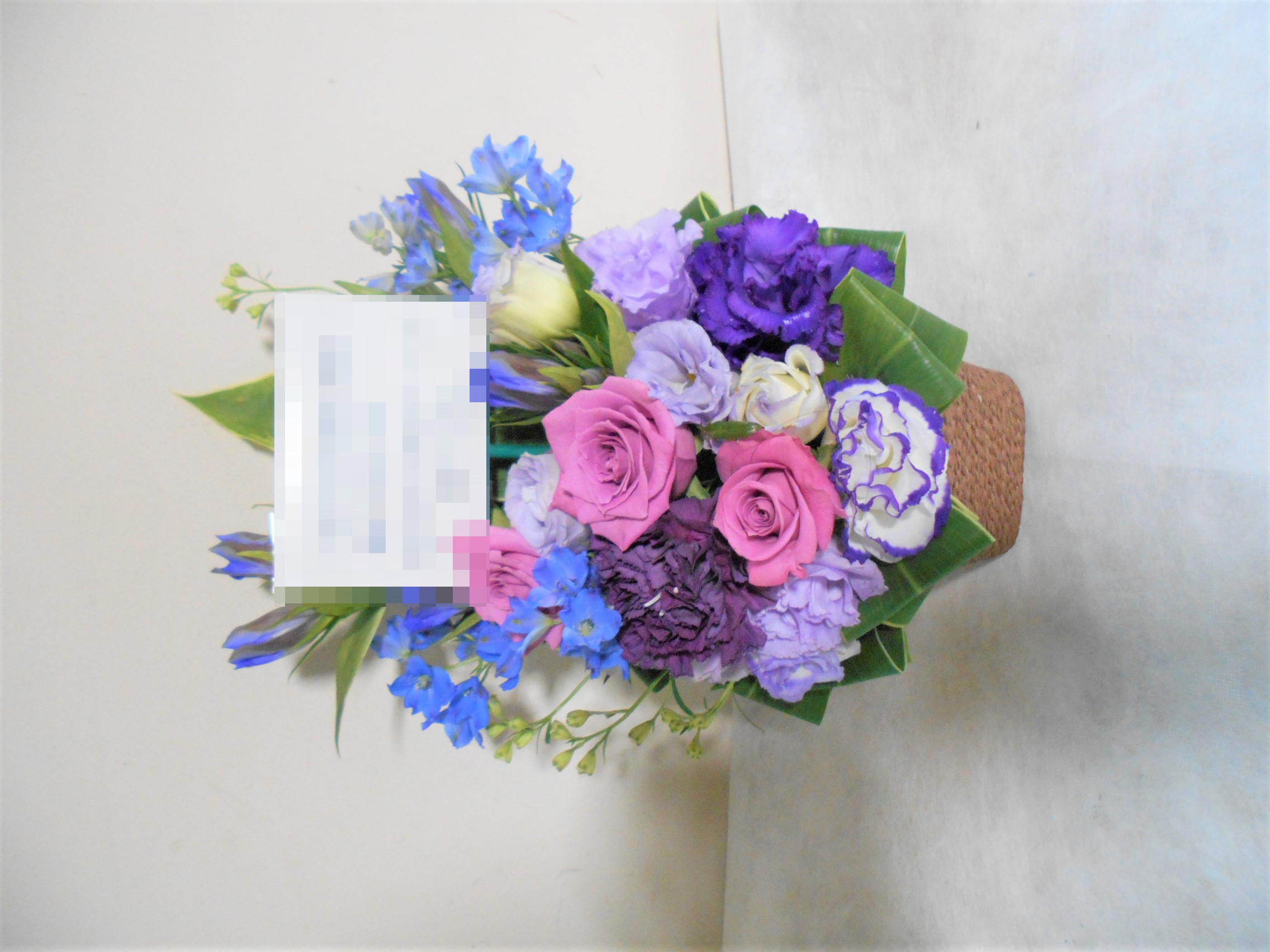 この写真は、実際にお届けさせていただいたアレンジメントです