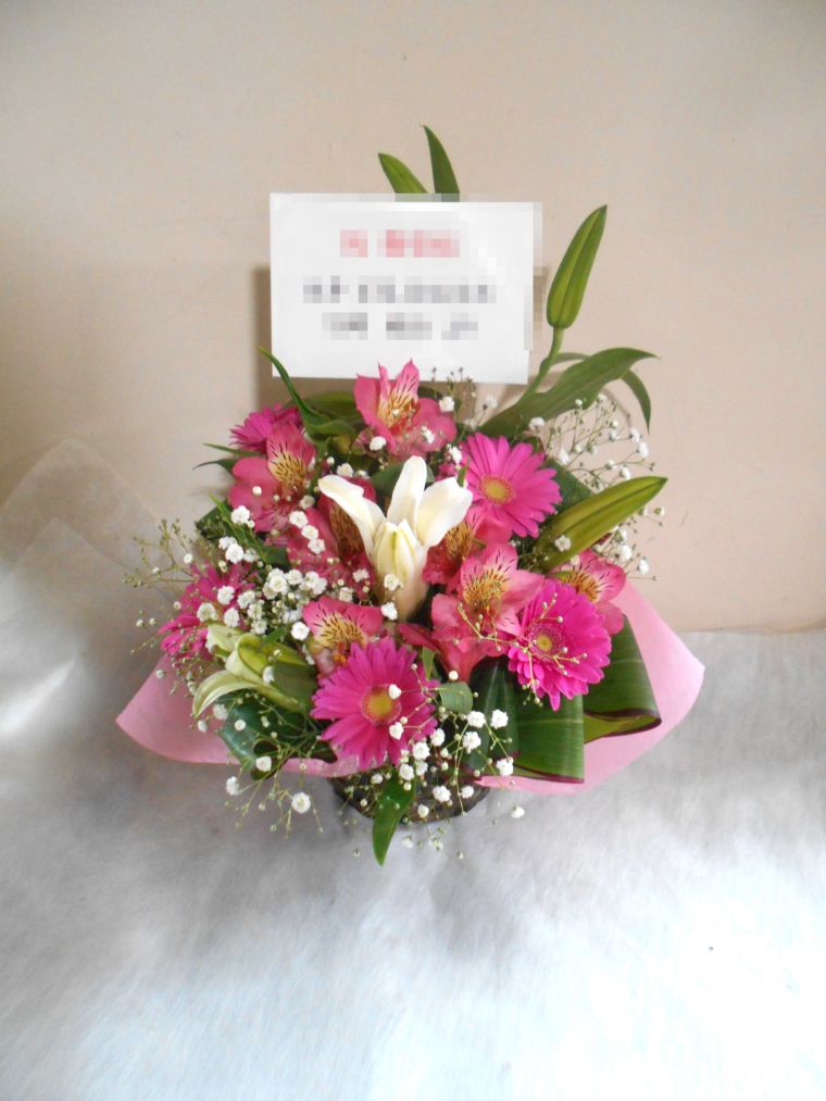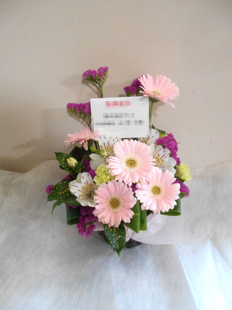 アレンジメントの実際にお届けした写真です。花秘書では発送前に写真をメールで送信致しますので安心して大切な顧客や取引様へのギフトにご利用頂けます。
