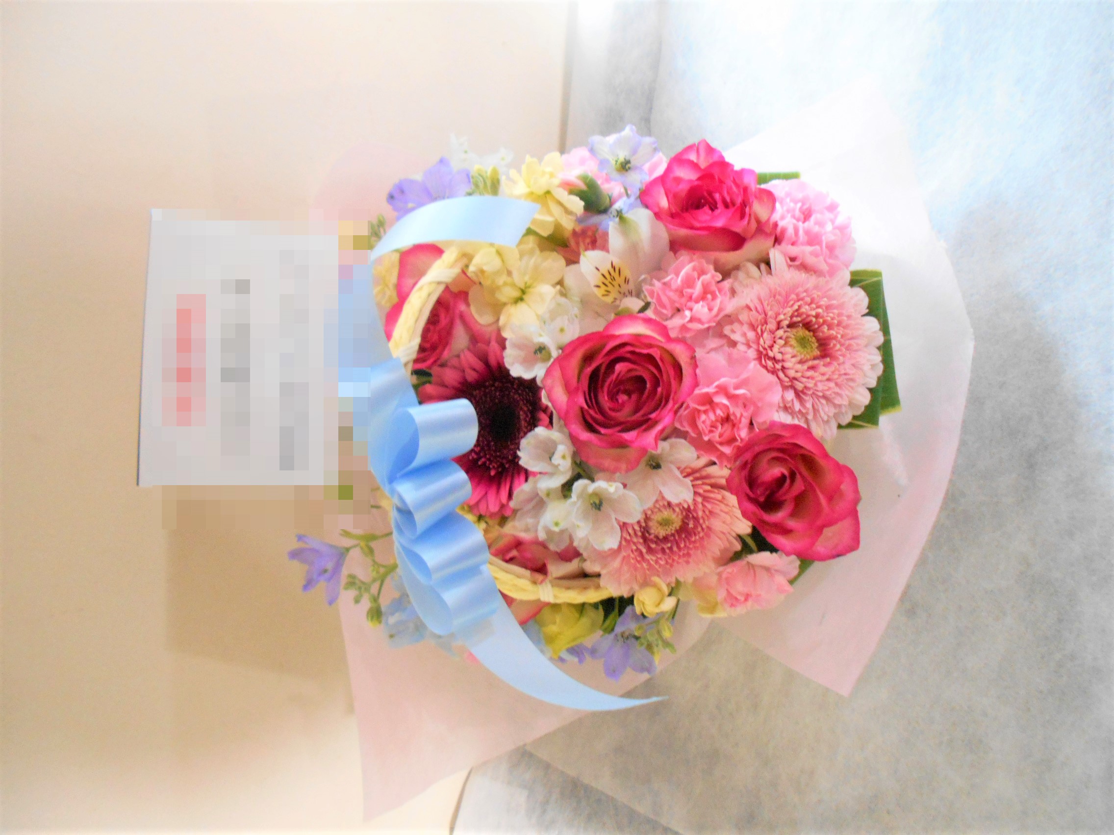 この写真は、実際にお届けさせていただいたアレンジメントです