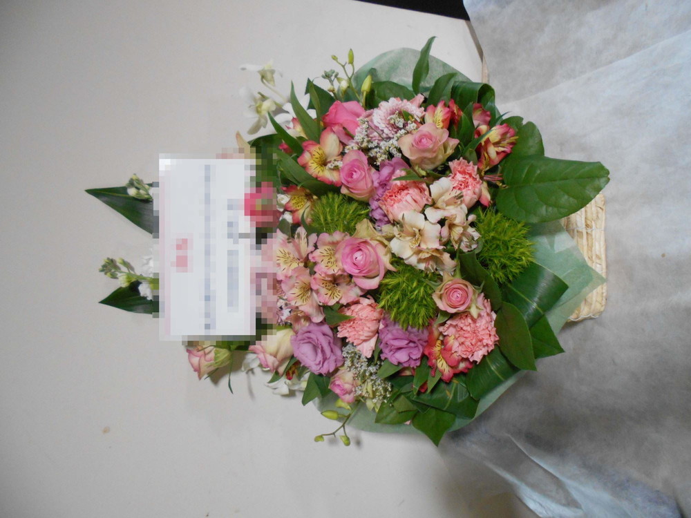 アレンジメントの実際にお届けした写真です。花秘書では発送前に写真をメールで送信致しますので安心して大切な顧客や取引様へのギフトにご利用頂けます。