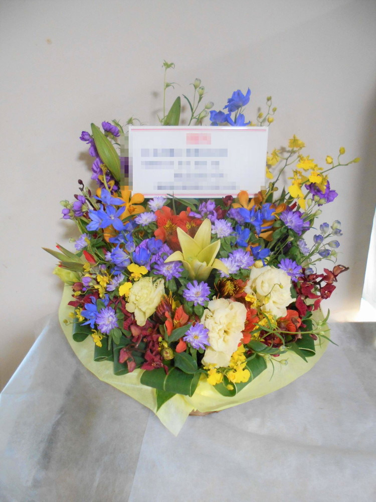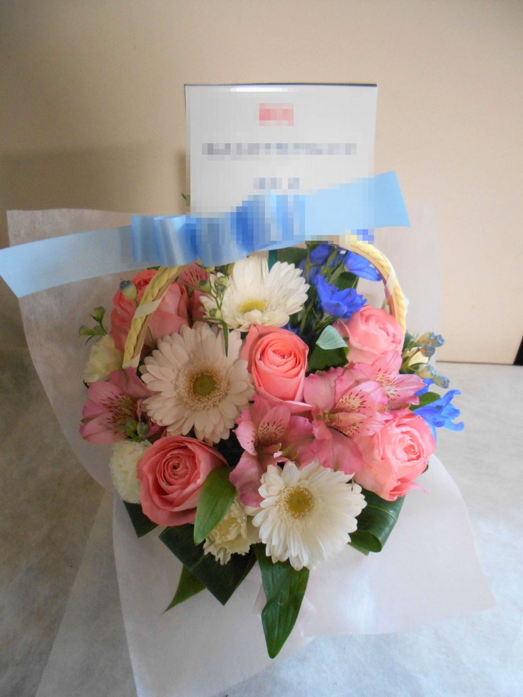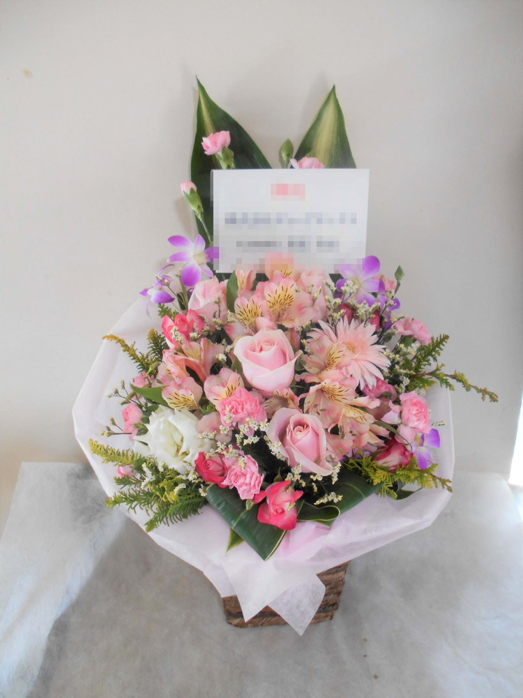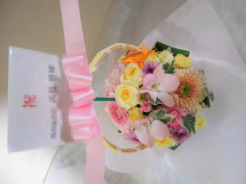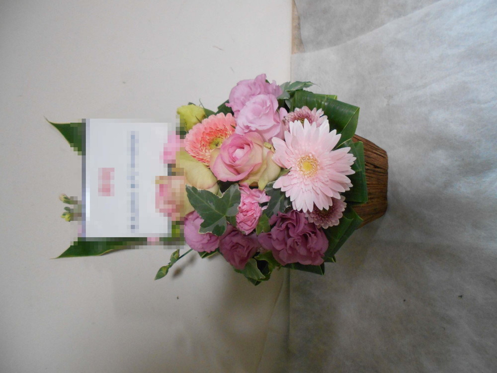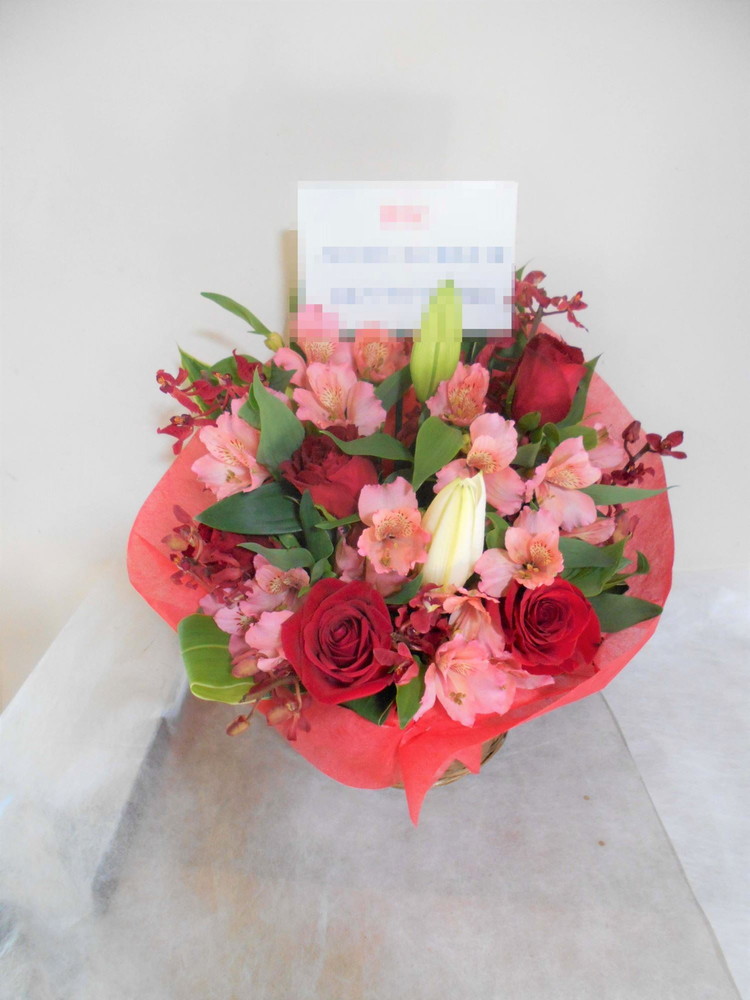 アレンジメントの実際にお届けした写真です。花秘書では発送前に写真をメールで送信致しますので安心して大切な顧客や取引様へのギフトにご利用頂けます。