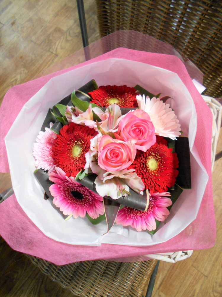 この写真は、実際にお届けさせていただいたアレンジメントです