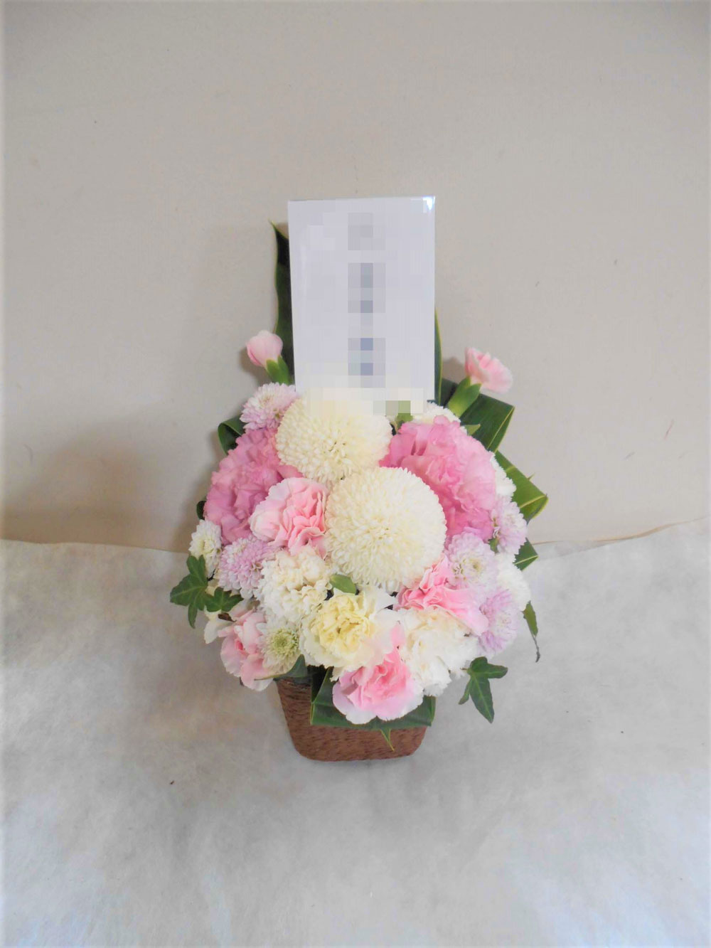 お悔やみ お供えの花 供花 (ホワイト&ピンクでまとめたバスケットアレンジ)
