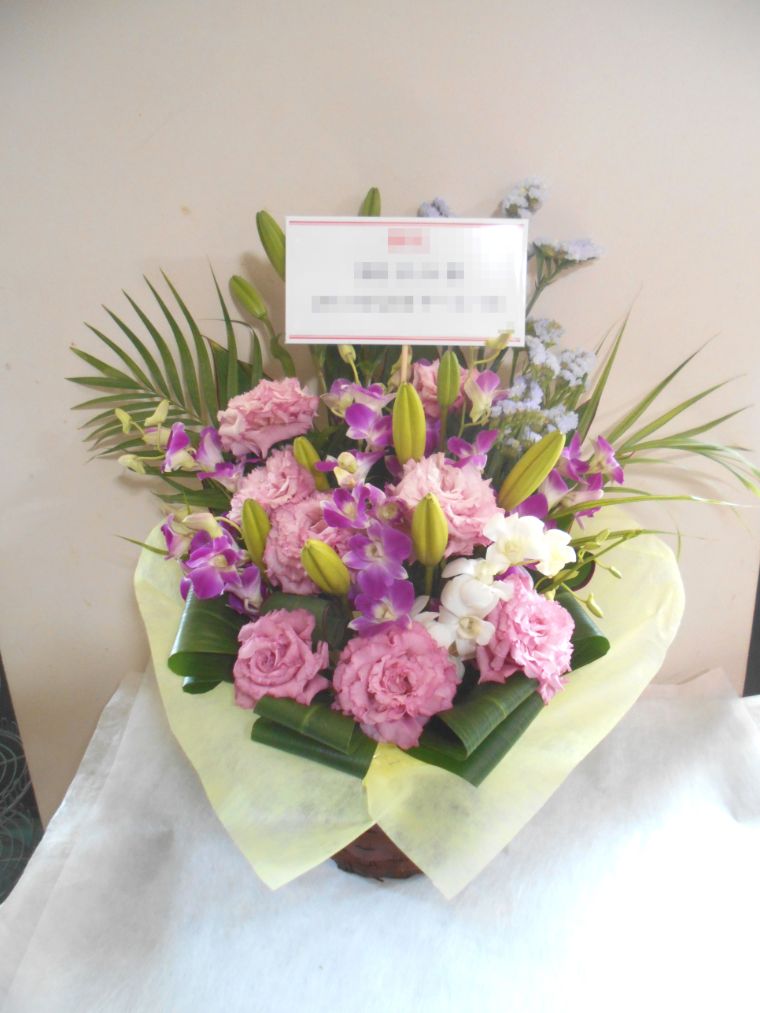 アレンジメントの実際にお届けした写真です。花秘書では発送前に写真をメールで送信致しますので安心して大切な顧客や取引様へのギフトにご利用頂けます。
