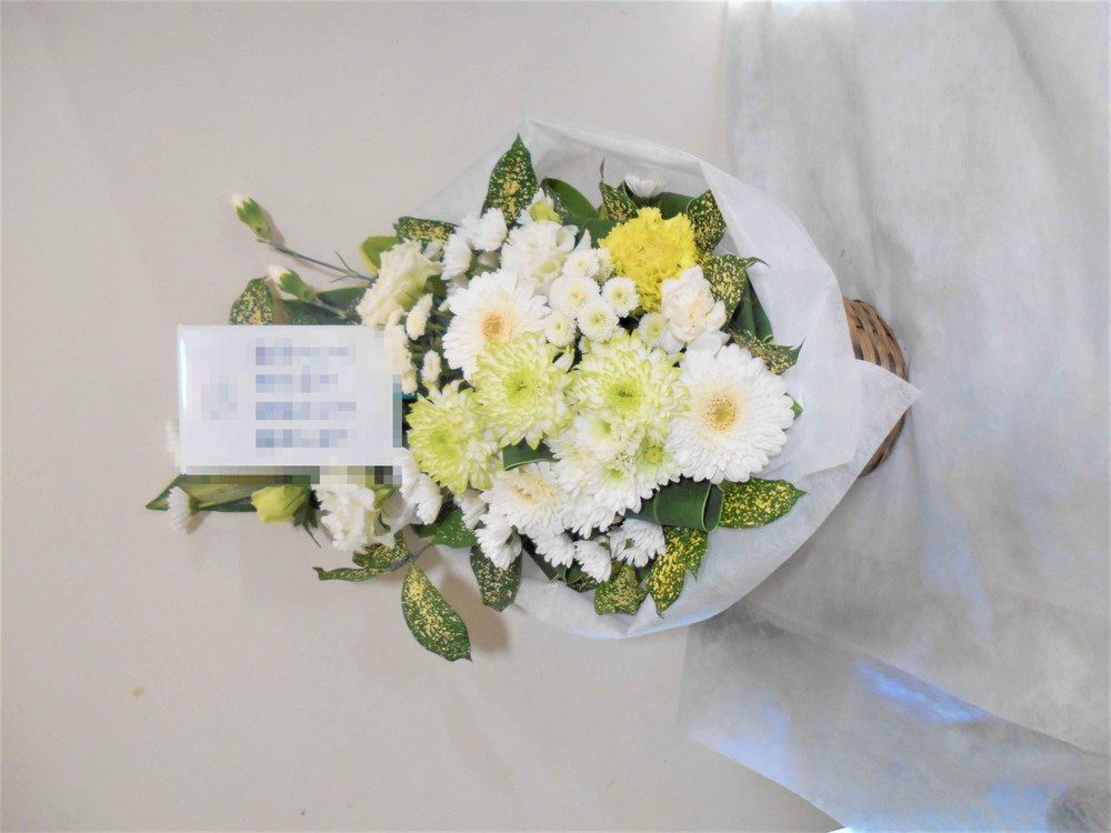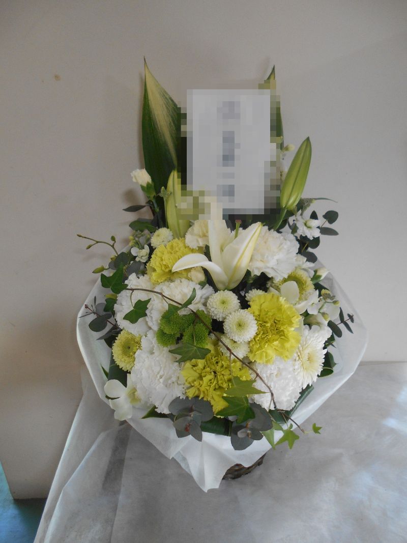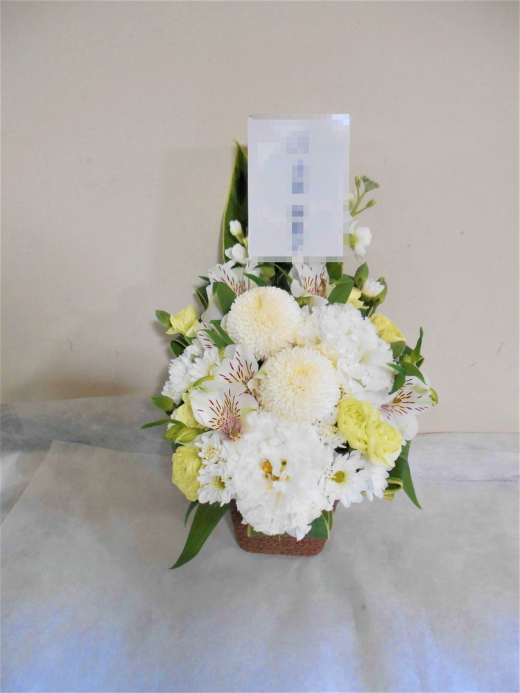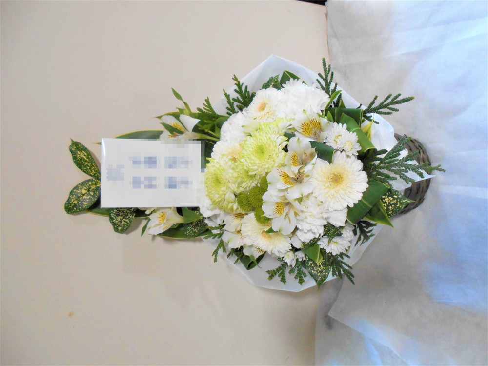お悔やみ お供えの花 供花 (ホワイト&グリーンを基調にしたバスケットアレンジ)
