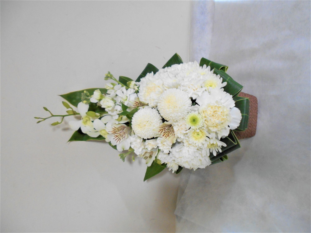 お悔やみ お供えの花 供花 (純白でまとめたバスケットアレンジ)