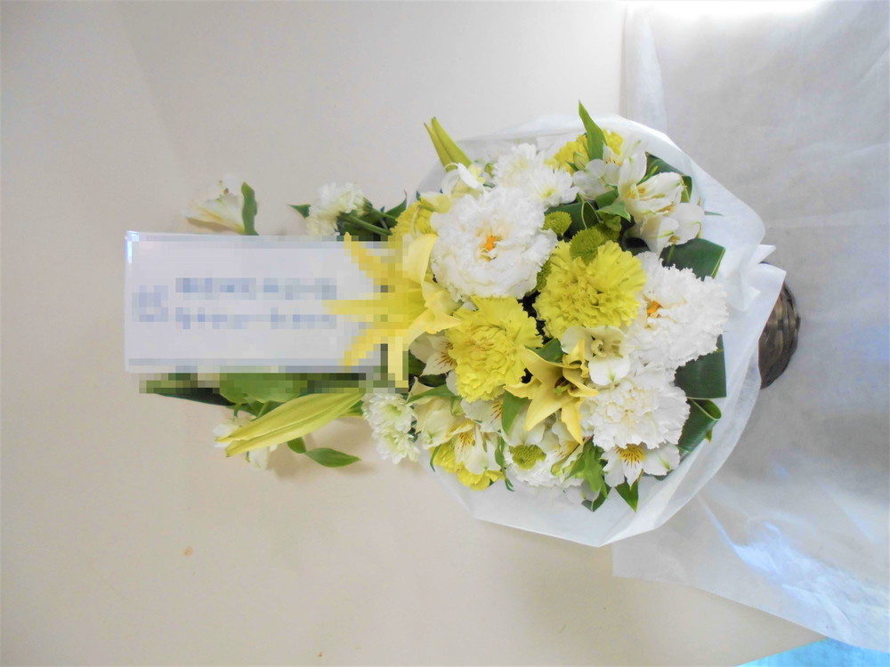 【白系】お悔やみ お供えの花 供花 (黄ユリをメインにホワイト系でまとめたバスケットアレンジ)