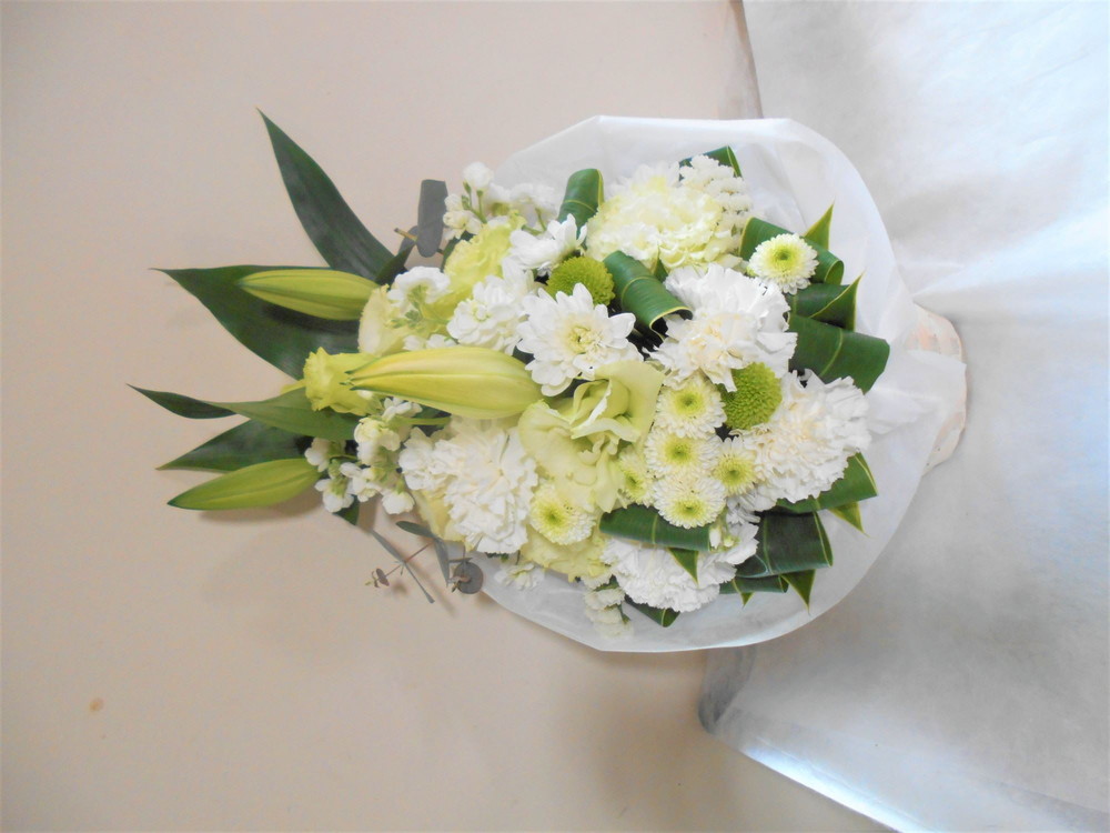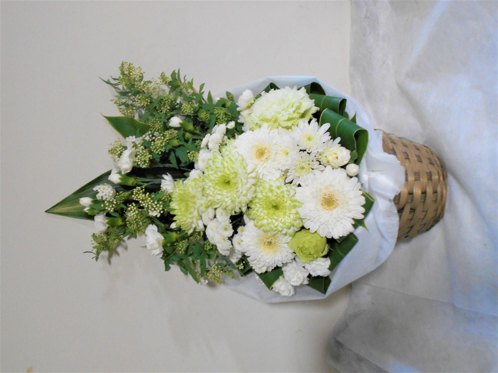 お悔やみ お供えの花 供花 (ホワイト&グリーンでまとめたバスケットアレンジ)
