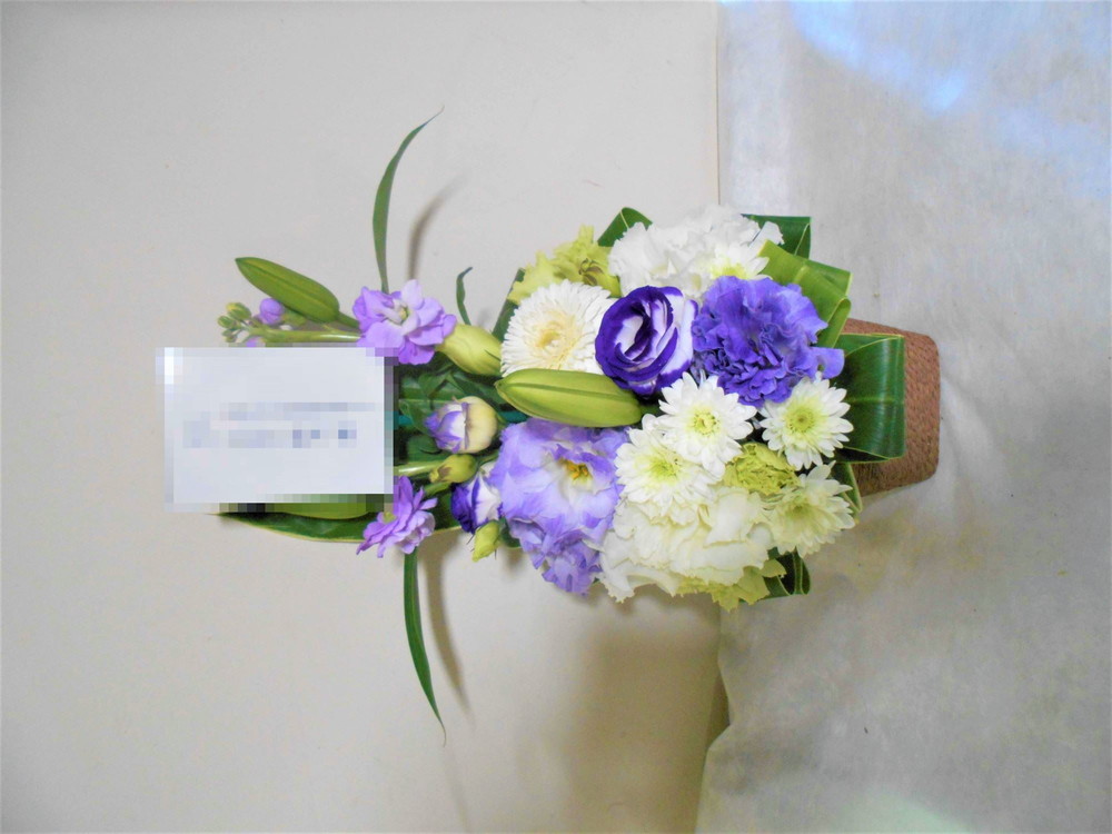 この写真は、実際にお届けさせていただいたアレンジメントです