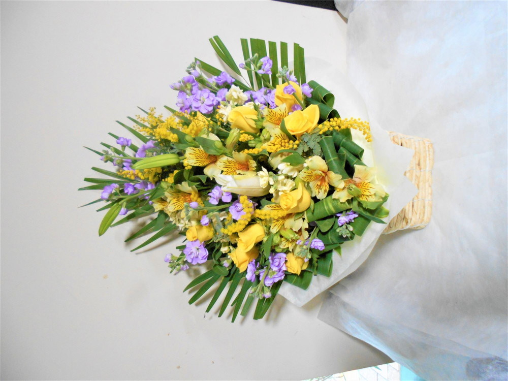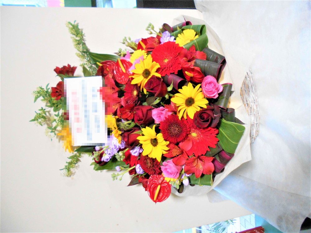 この写真は、実際にお届けさせていただいたアレンジメントです