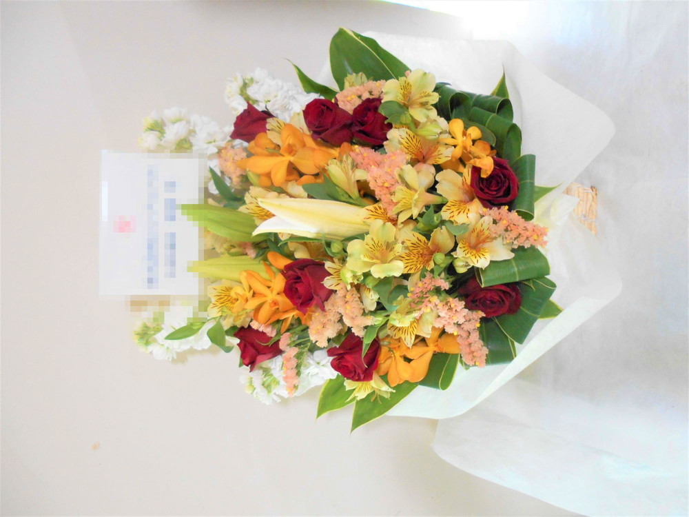 アレンジメントの実際にお届けした写真です。花秘書では発送前に写真をメールで送信致しますので安心して大切な顧客や取引様へのギフトにご利用頂けます。
