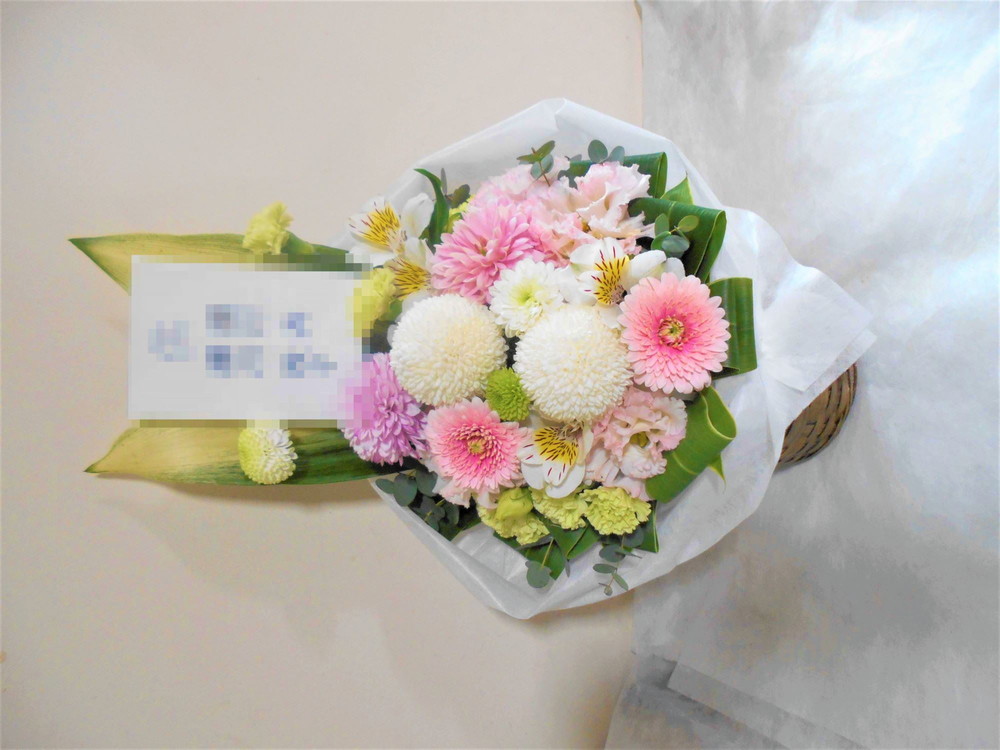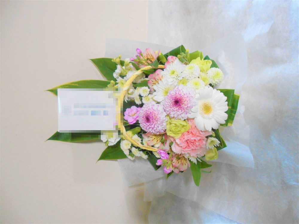 お悔やみ お供えの花 供花 (淡いピンク系のお花でまとめたバスケットアレンジ)