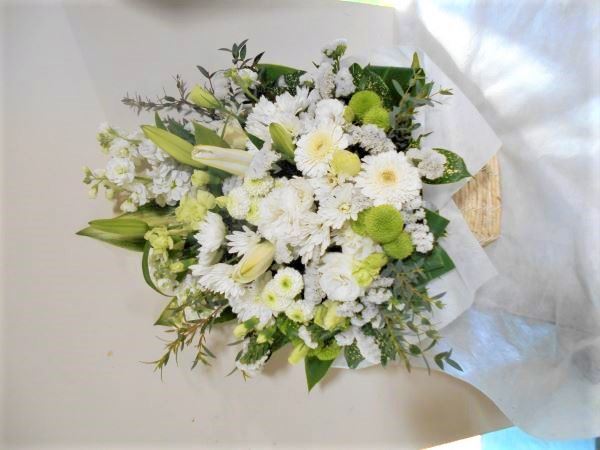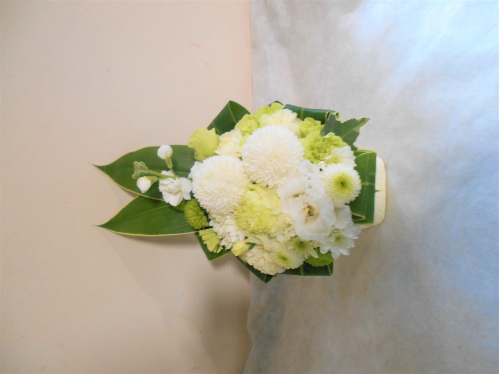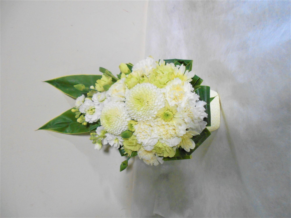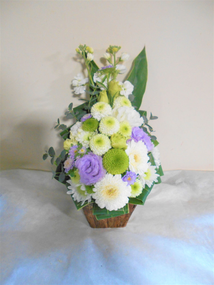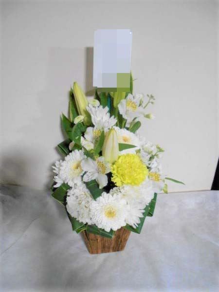 お悔やみ お供えの花 供花 (ホワイト&グリーンでまとめたバスケットアレンジ)