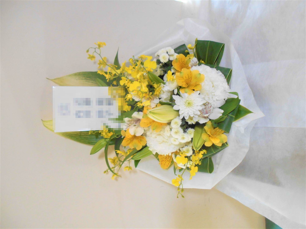 お悔やみ お供えの花 供花 (白ユリをメインに黄色の洋蘭をあしらったバスケットアレンジ)