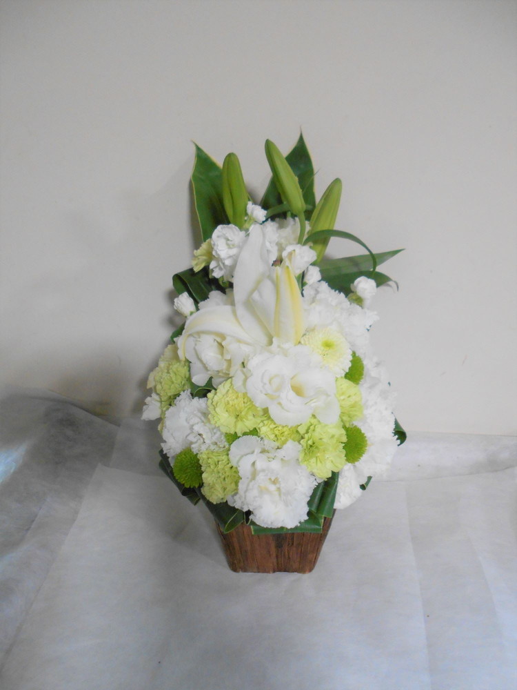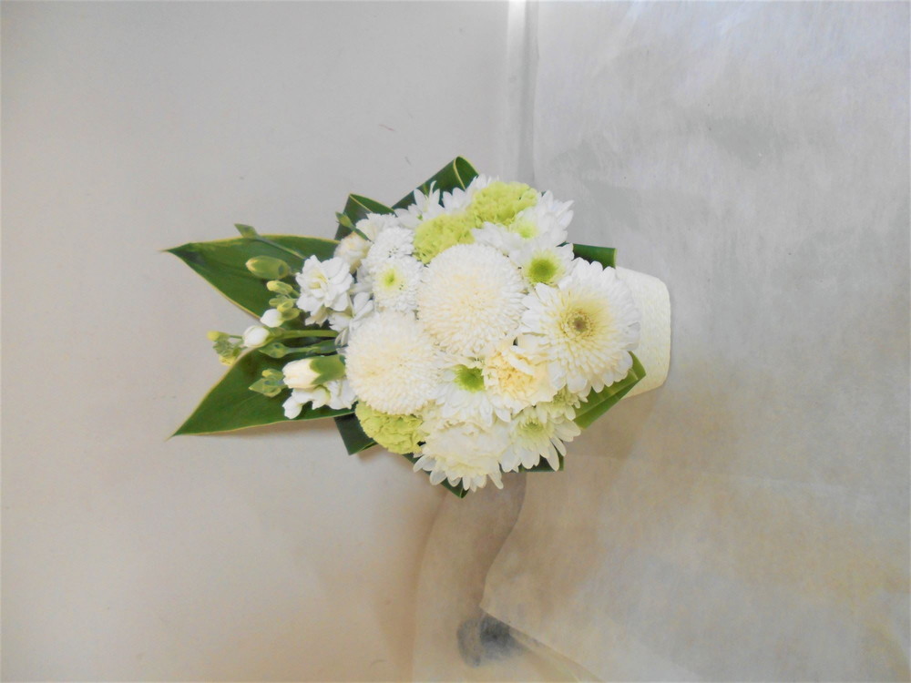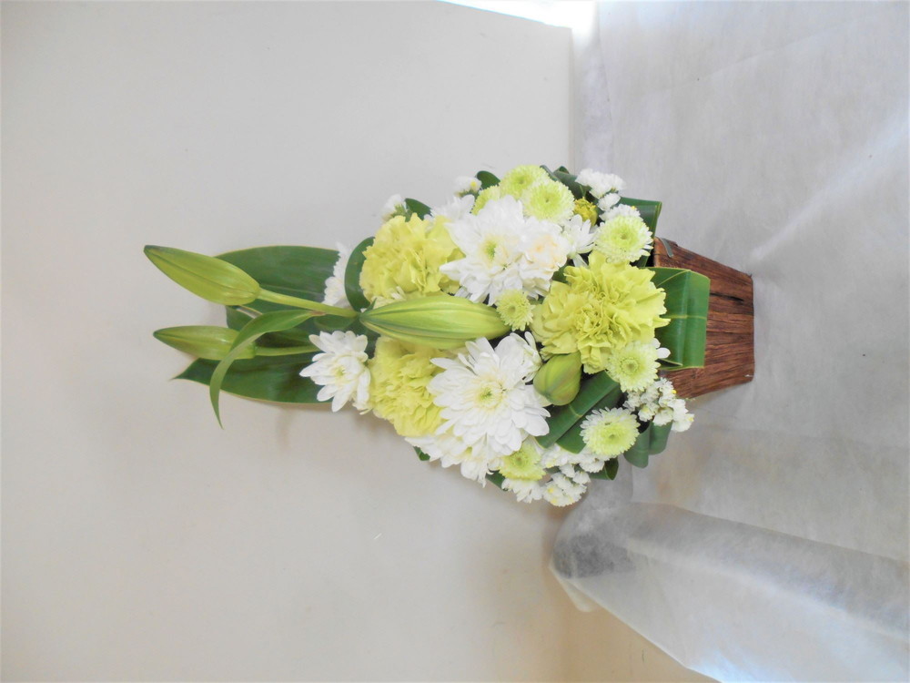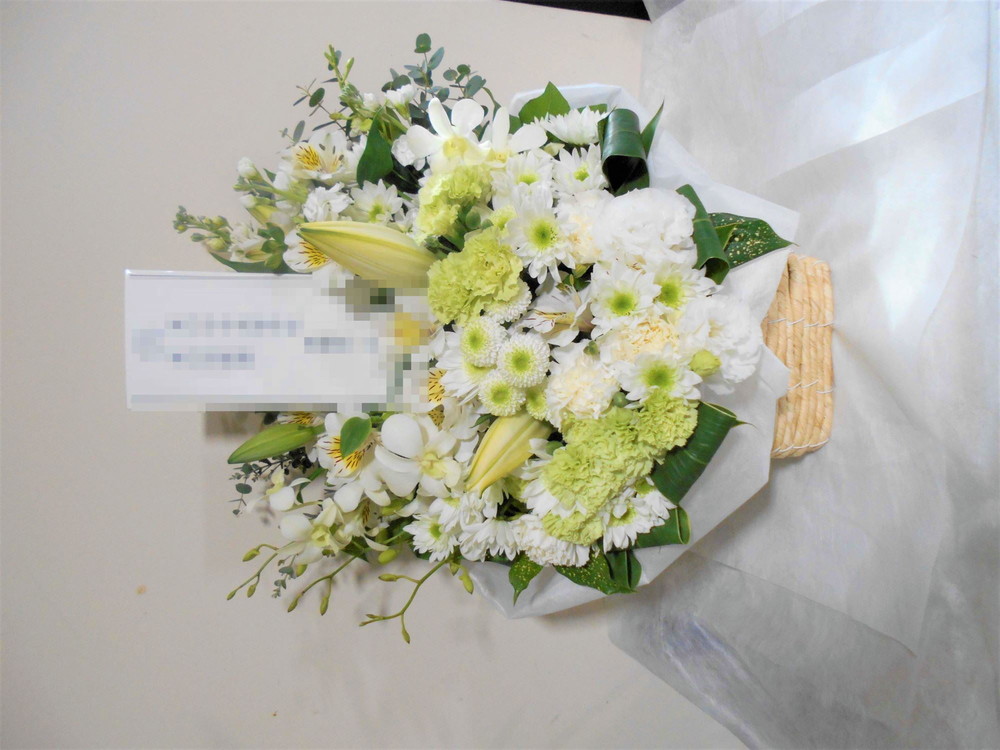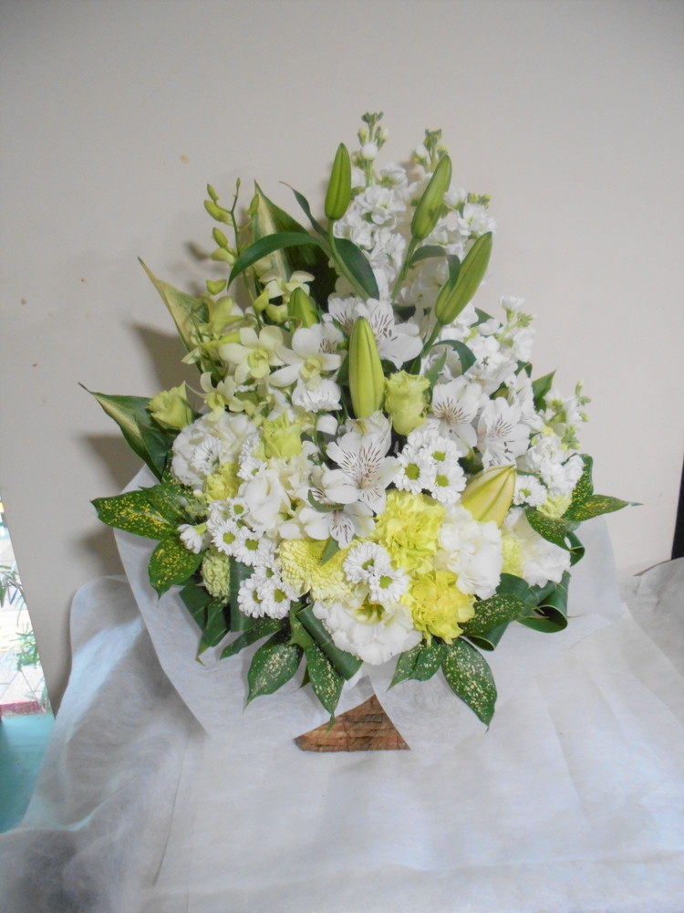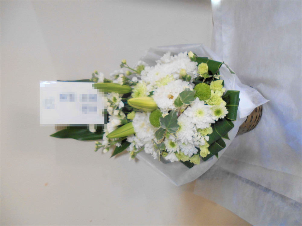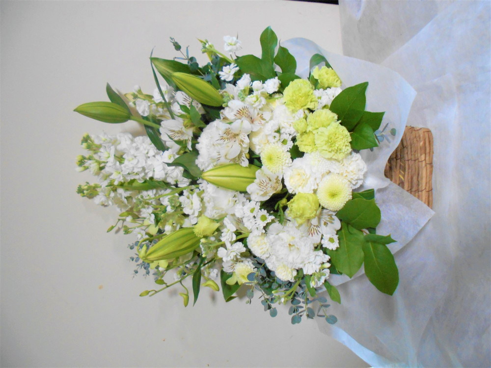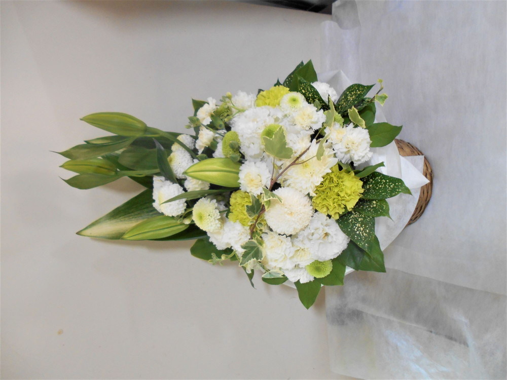 お悔やみ お供えの花 供花 (ホワイト&グリーンでまとめたバスケットアレンジ)