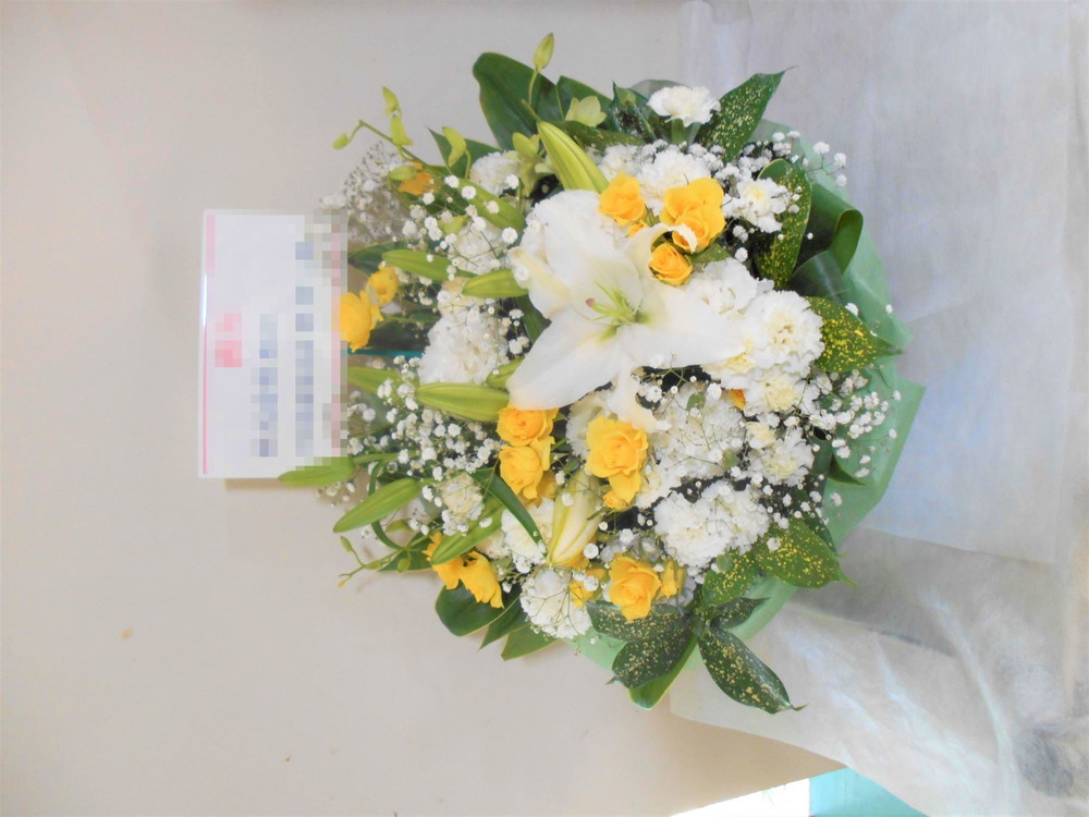 お悔やみ お供えの花 供花 (白基調でユリのお花をメインにしたバスケットアレンジ)