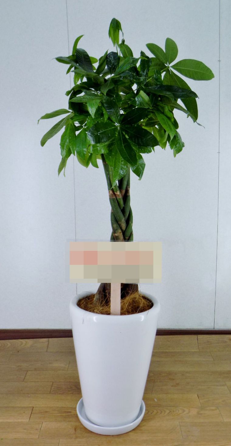 パキラ (発財樹)6号鉢(白バスケット)