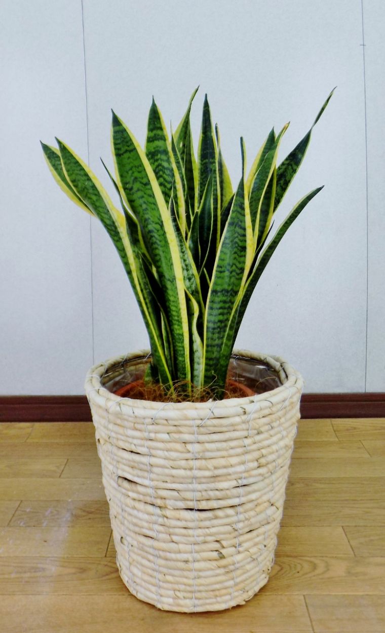 サンセベリア (トラノオ)4号鉢(白角バスケット)
