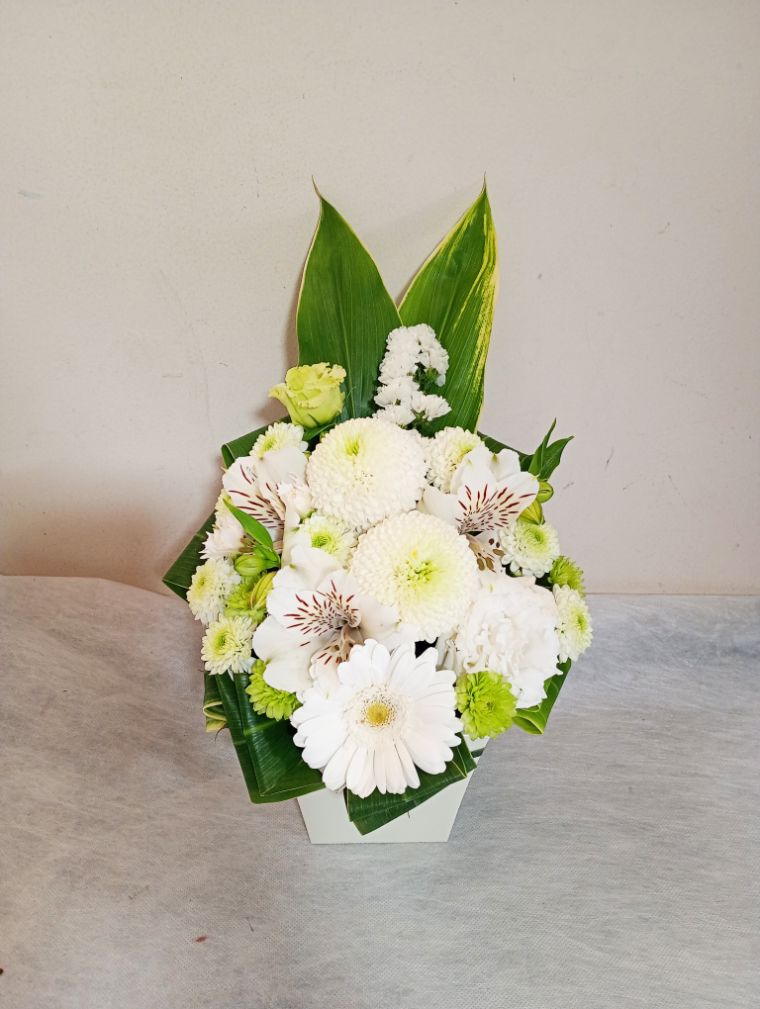 お悔やみ お供えの花 供花 (ホワイト&グリーンでまとめたバスケットアレンジ)