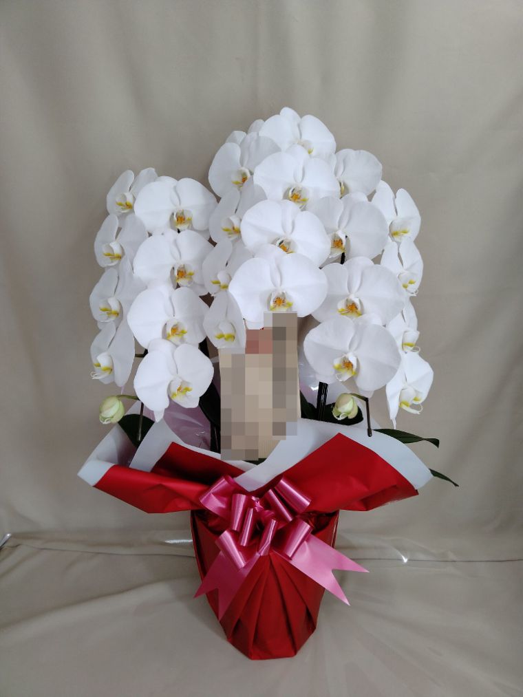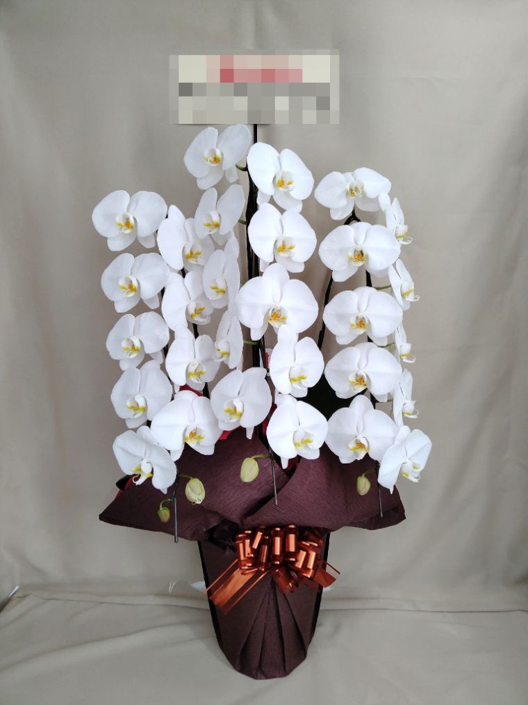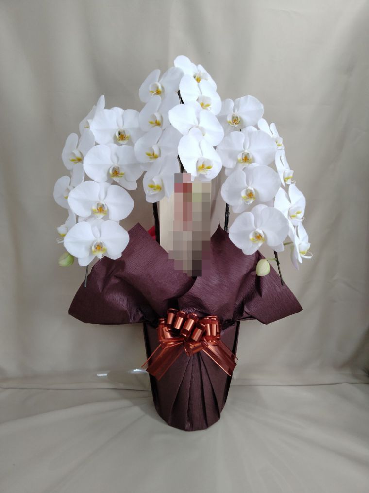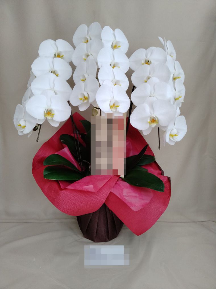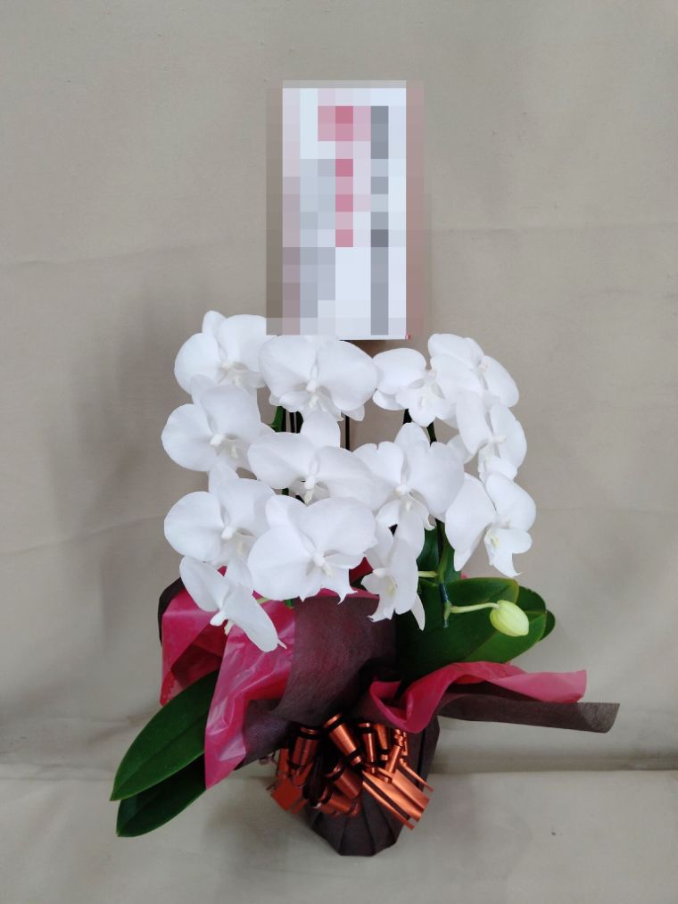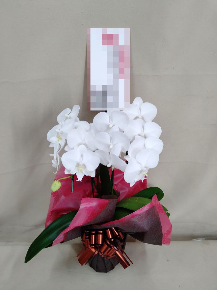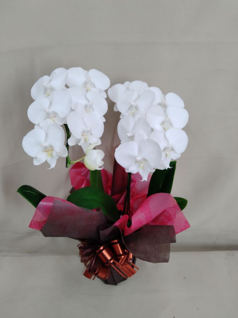 胡蝶蘭の実際にお届けした写真です。花秘書では発送前に写真をメールで送信致しますので安心して大切な顧客や取引様へのギフトにご利用頂けます。