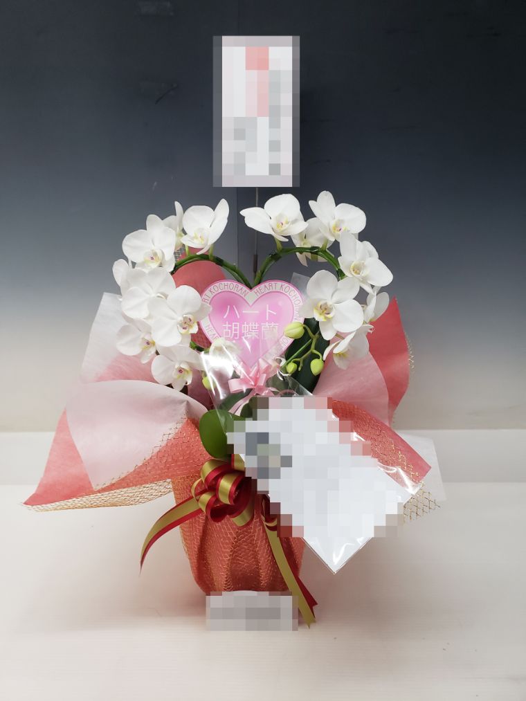 ハート型のミディ胡蝶蘭(白)