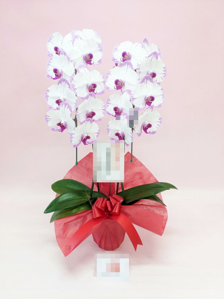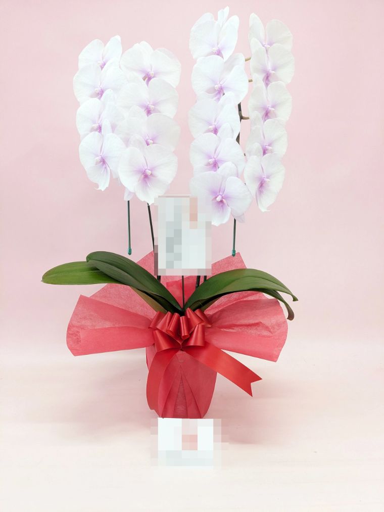胡蝶蘭の実際にお届けした写真です。花秘書では発送前に写真をメールで送信致しますので安心して大切な顧客や取引様へのギフトにご利用頂けます。