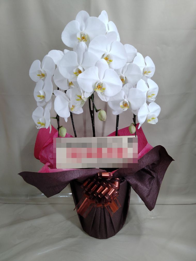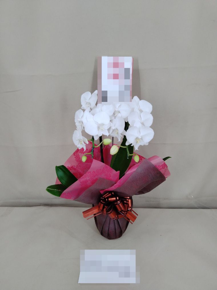 胡蝶蘭の実際にお届けした写真です。花秘書では発送前に写真をメールで送信致しますので安心して大切な顧客や取引様へのギフトにご利用頂けます。