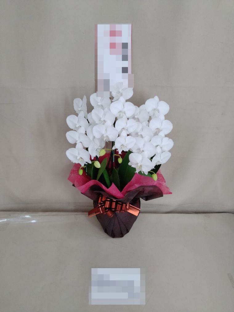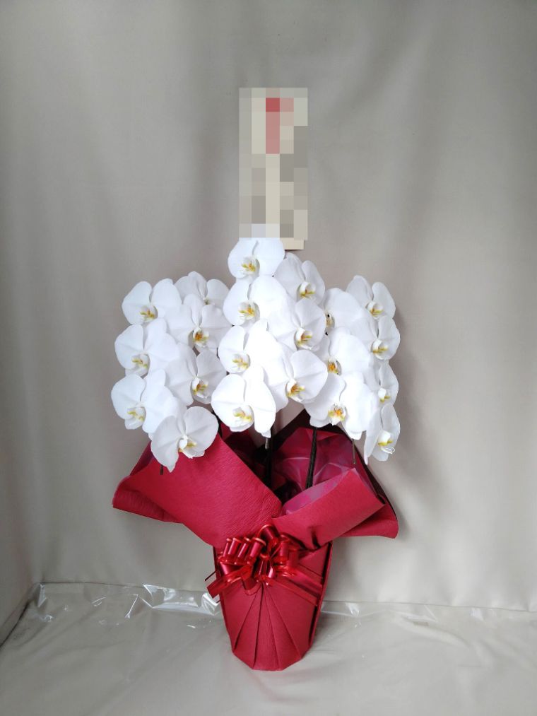 胡蝶蘭の実際にお届けした写真です。花秘書では発送前に写真をメールで送信致しますので安心して大切な顧客や取引様へのギフトにご利用頂けます。