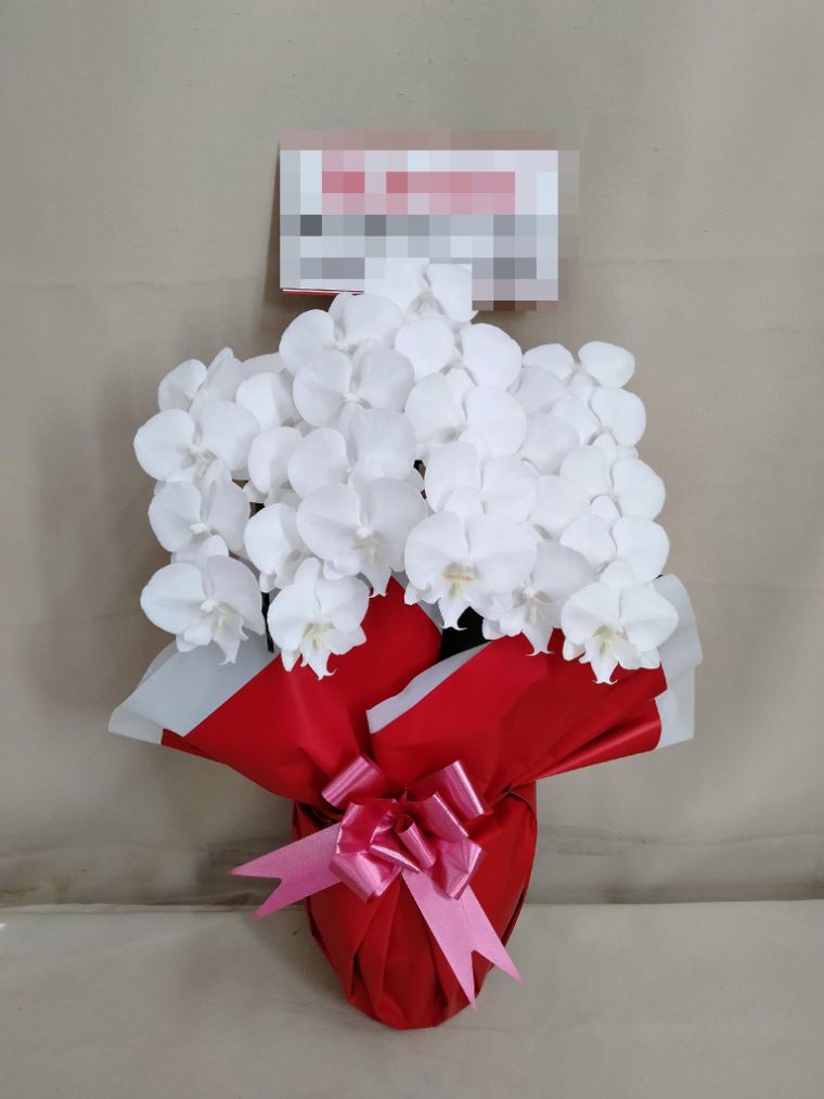 胡蝶蘭の実際にお届けした写真です。花秘書では発送前に写真をメールで送信致しますので安心して大切な顧客や取引様へのギフトにご利用頂けます。