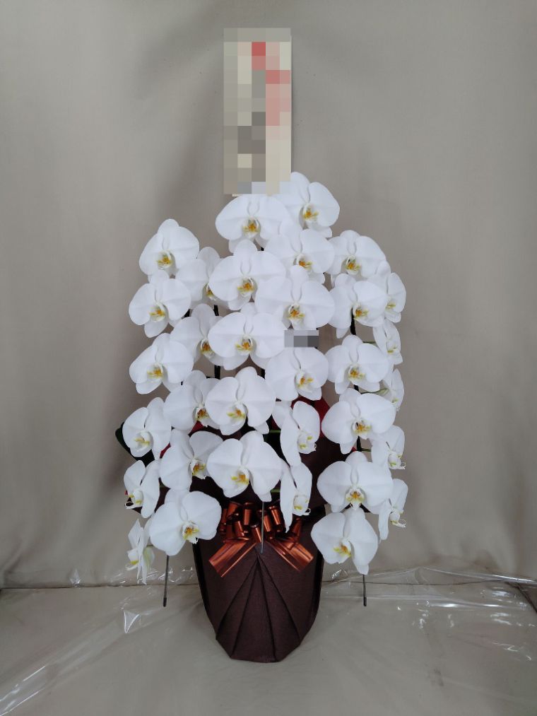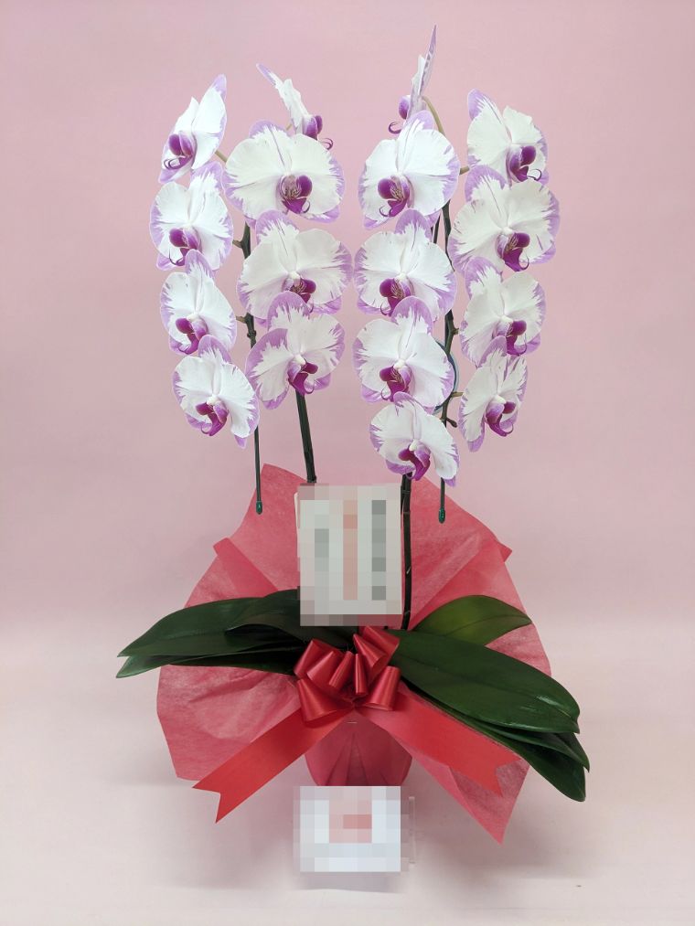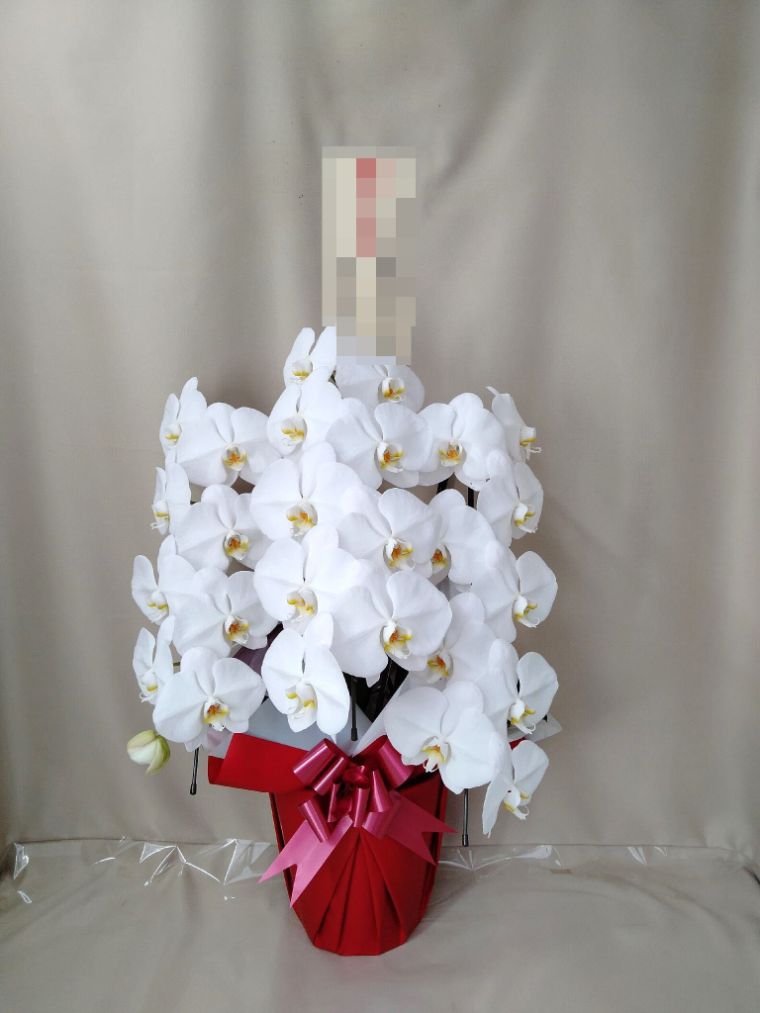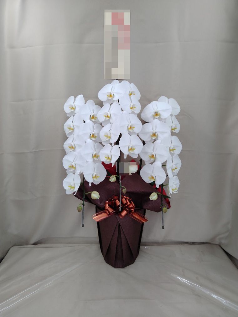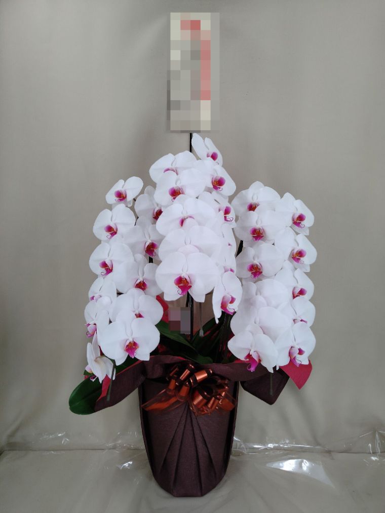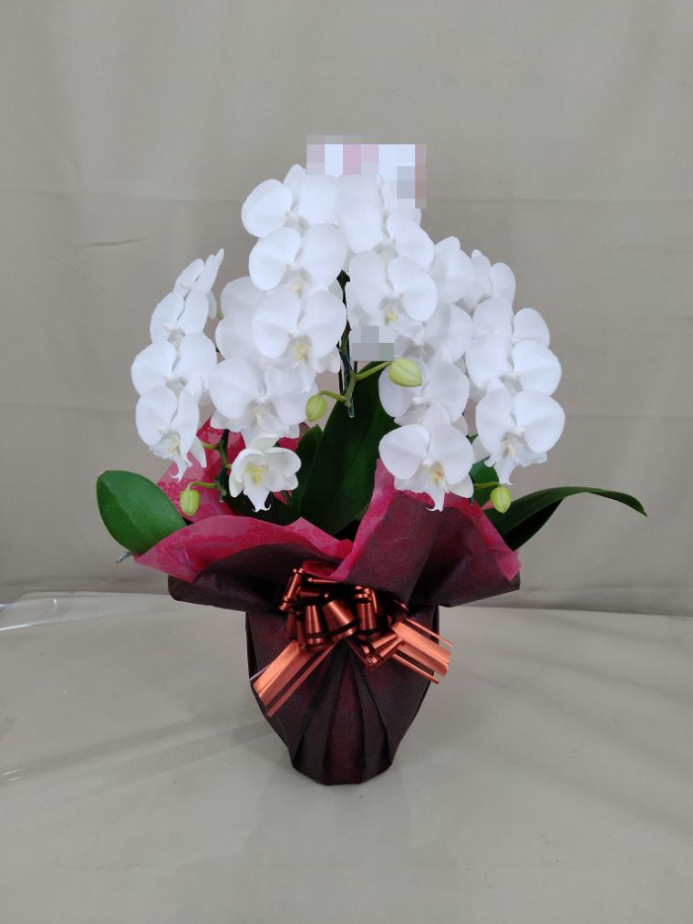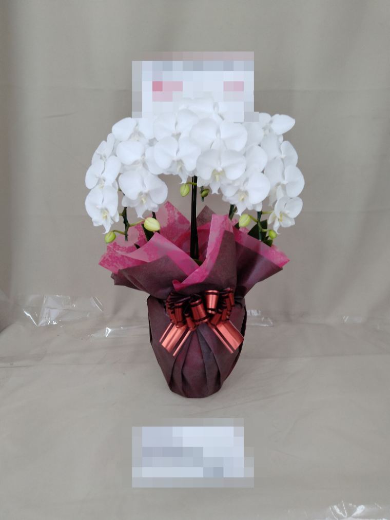 胡蝶蘭の実際にお届けした写真です。花秘書では発送前に写真をメールで送信致しますので安心して大切な顧客や取引様へのギフトにご利用頂けます。