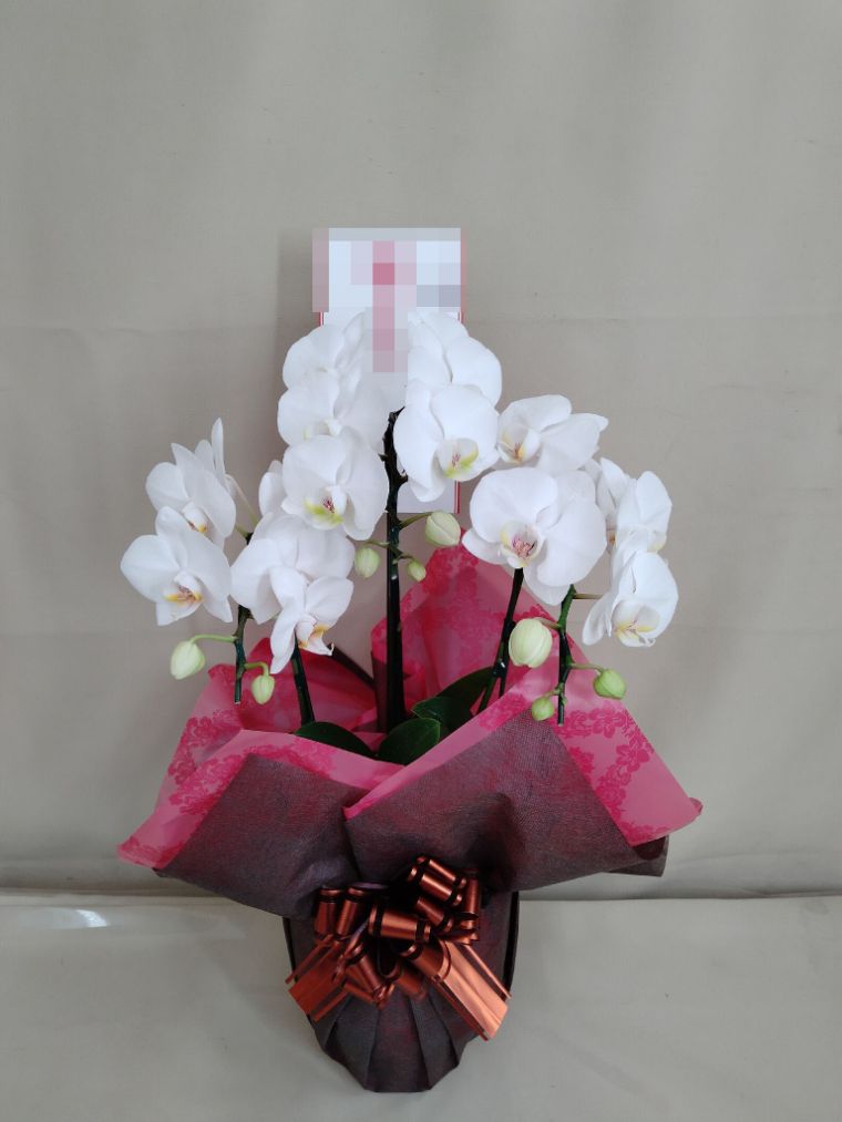 胡蝶蘭の実際にお届けした写真です。花秘書では発送前に写真をメールで送信致しますので安心して大切な顧客や取引様へのギフトにご利用頂けます。