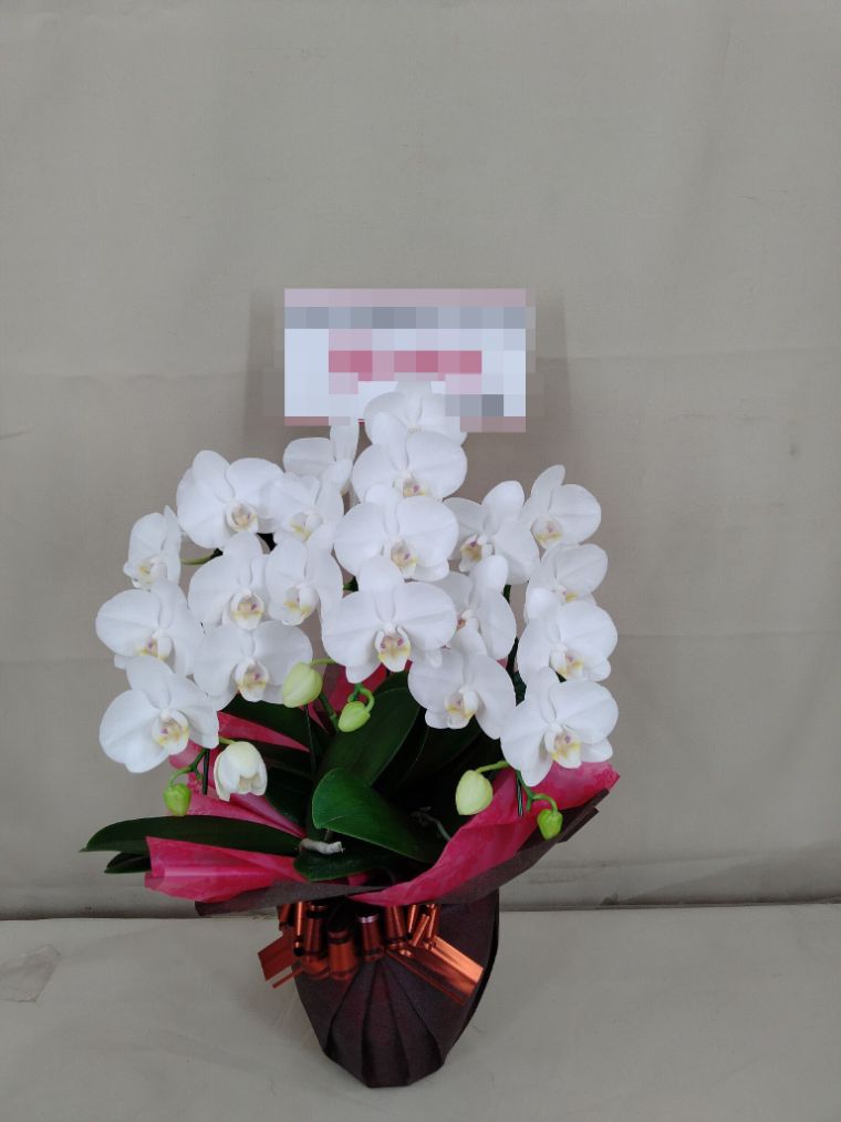 胡蝶蘭の実際にお届けした写真です。花秘書では発送前に写真をメールで送信致しますので安心して大切な顧客や取引様へのギフトにご利用頂けます。
