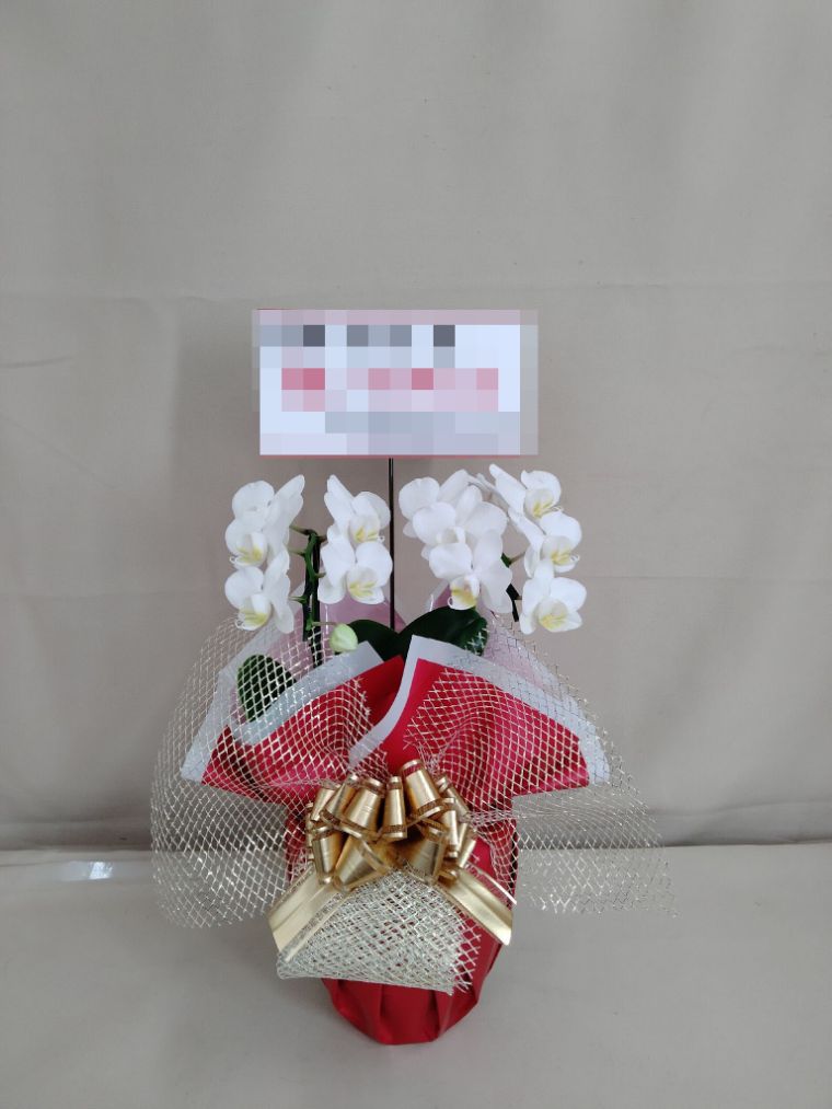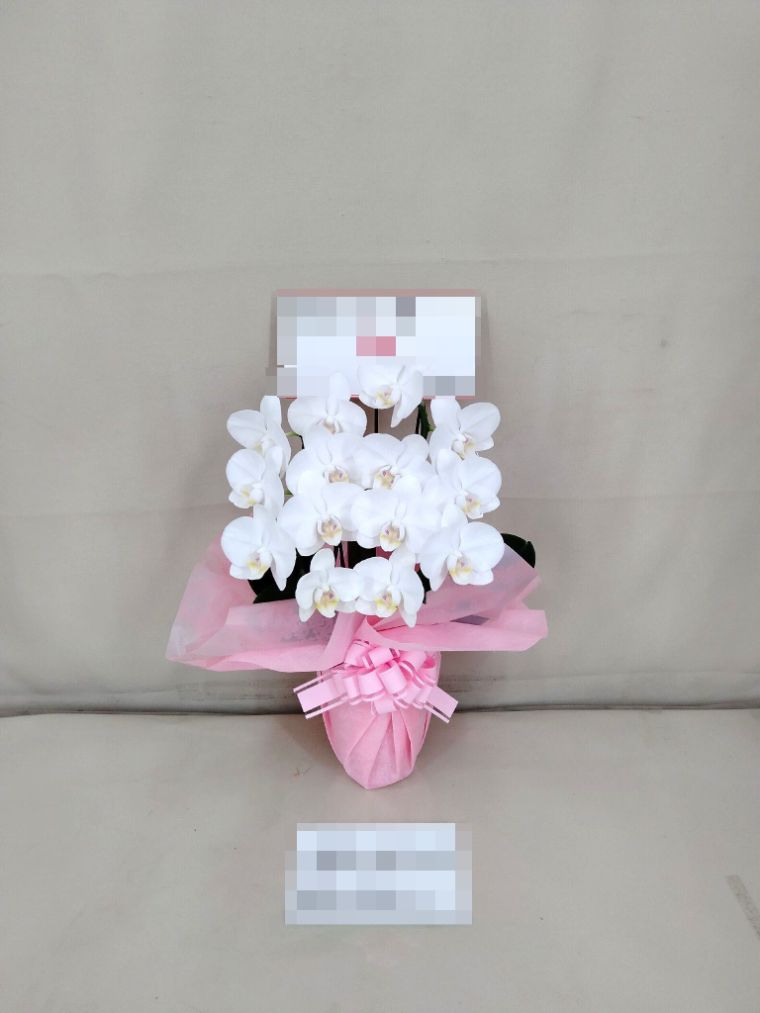 胡蝶蘭の実際にお届けした写真です。花秘書では発送前に写真をメールで送信致しますので安心して大切な顧客や取引様へのギフトにご利用頂けます。