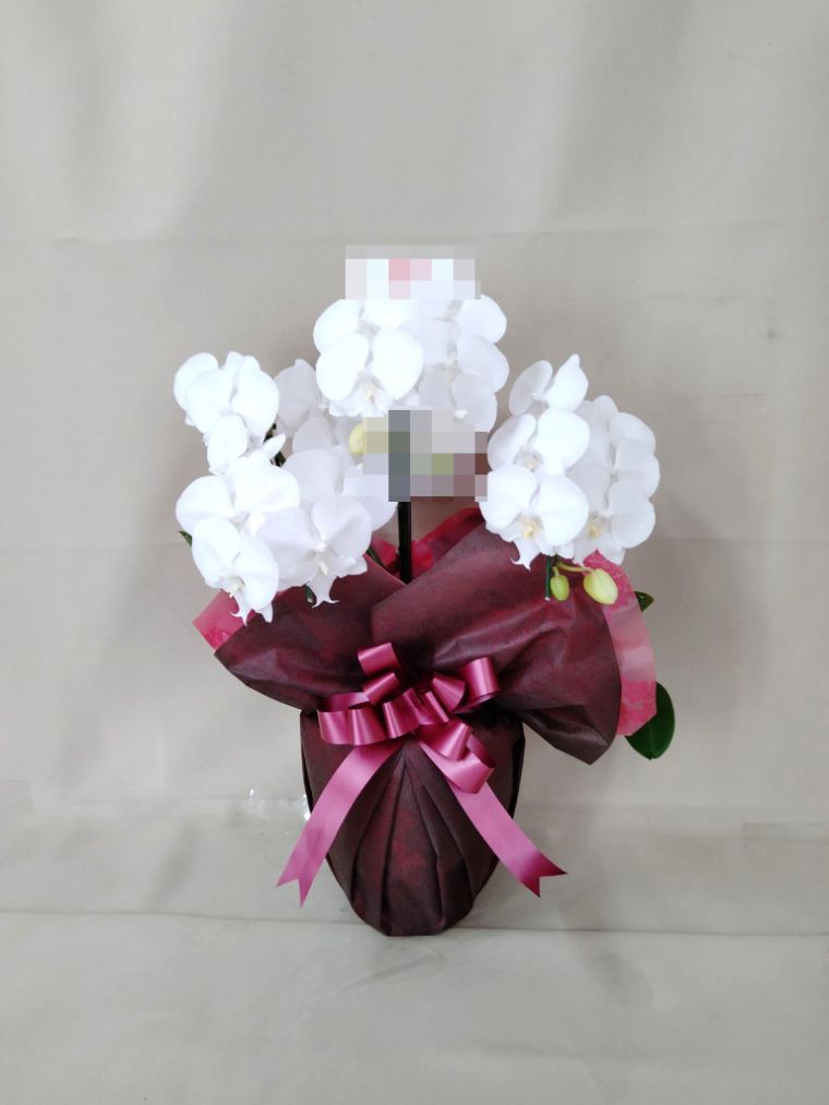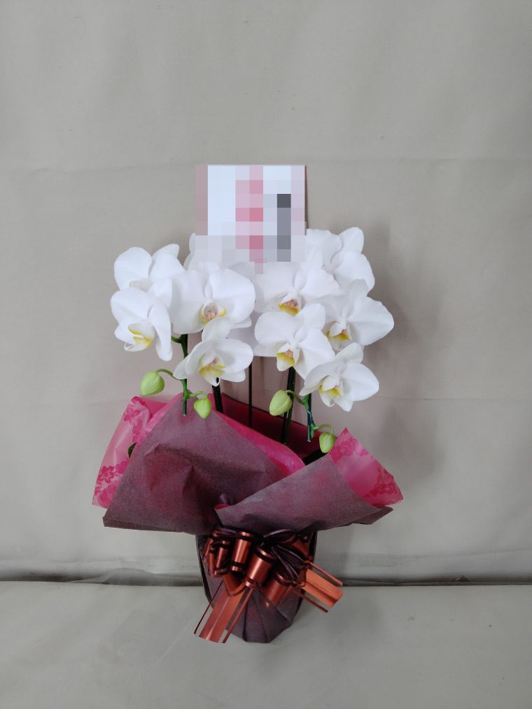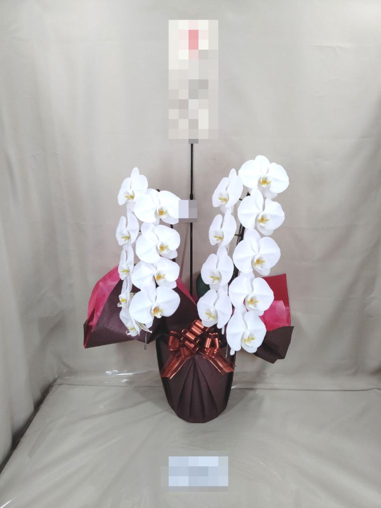 胡蝶蘭の実際にお届けした写真です。花秘書では発送前に写真をメールで送信致しますので安心して大切な顧客や取引様へのギフトにご利用頂けます。