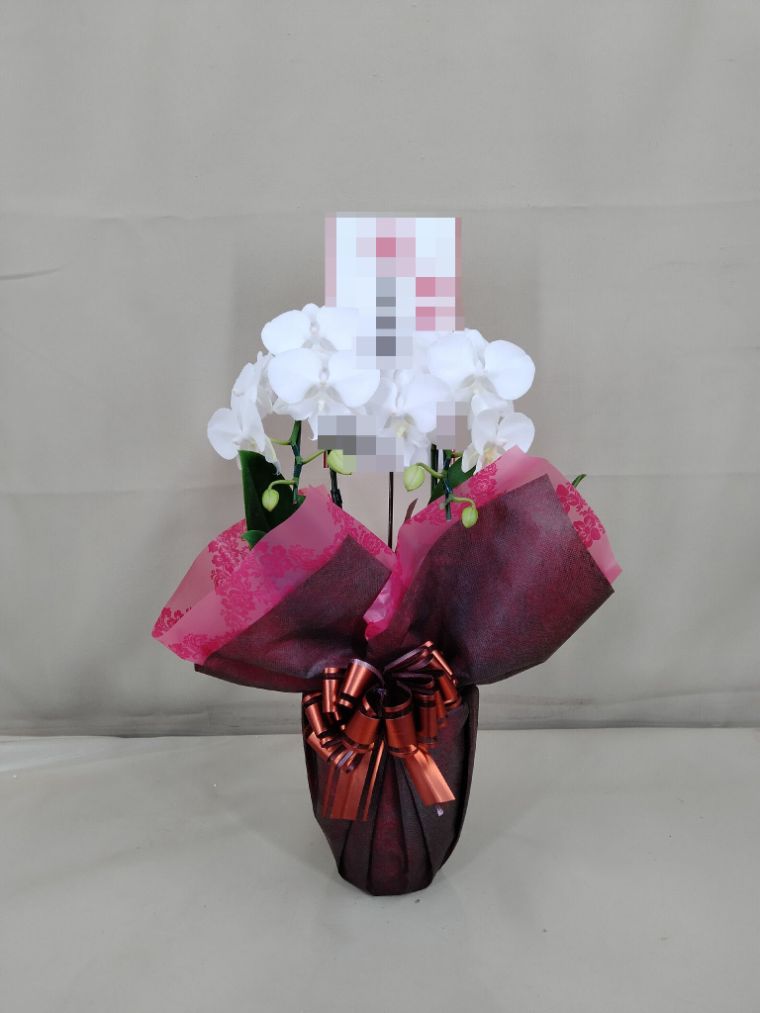 胡蝶蘭の実際にお届けした写真です。花秘書では発送前に写真をメールで送信致しますので安心して大切な顧客や取引様へのギフトにご利用頂けます。