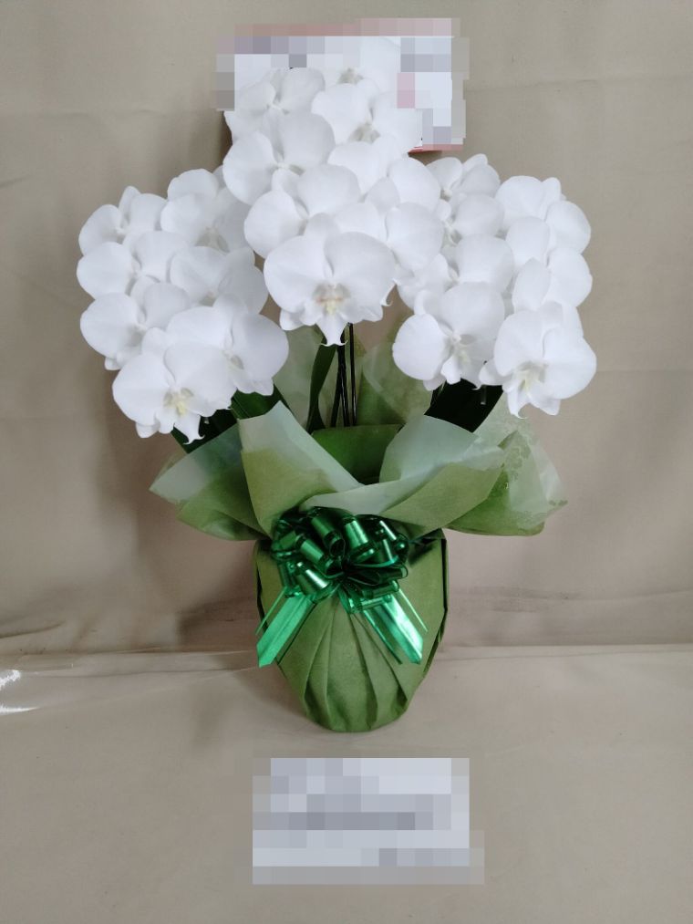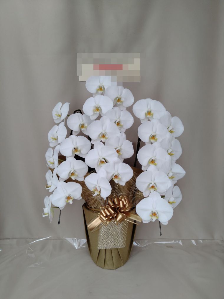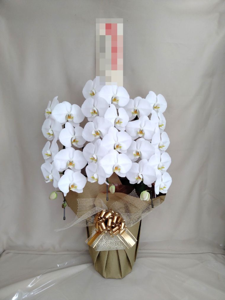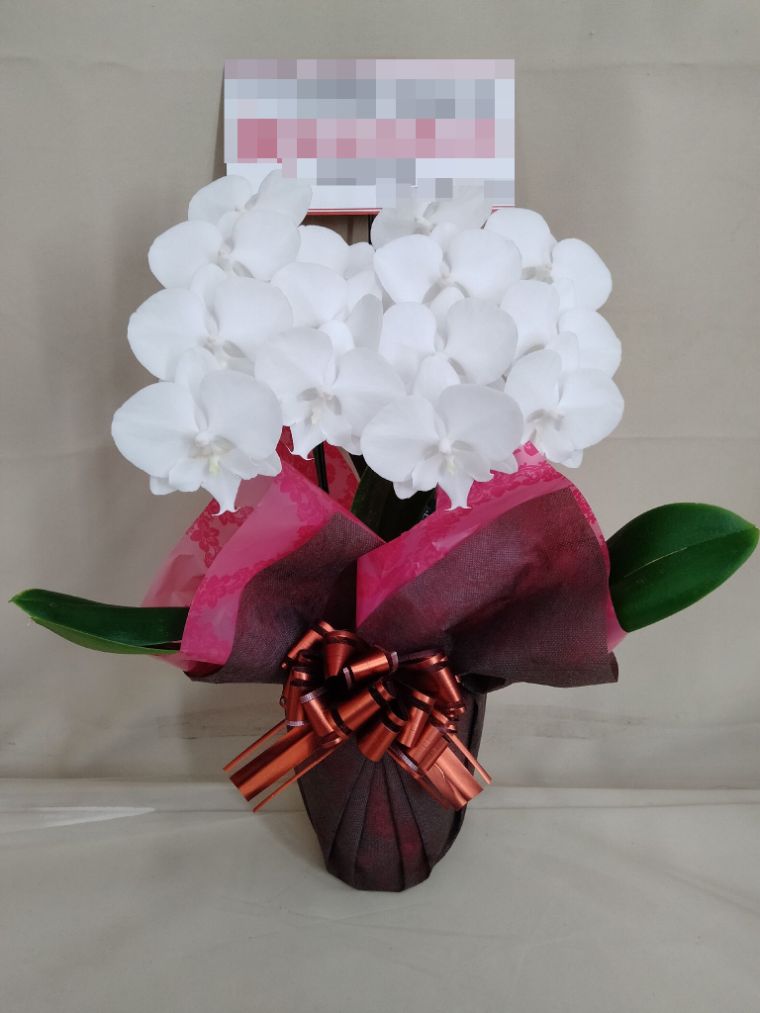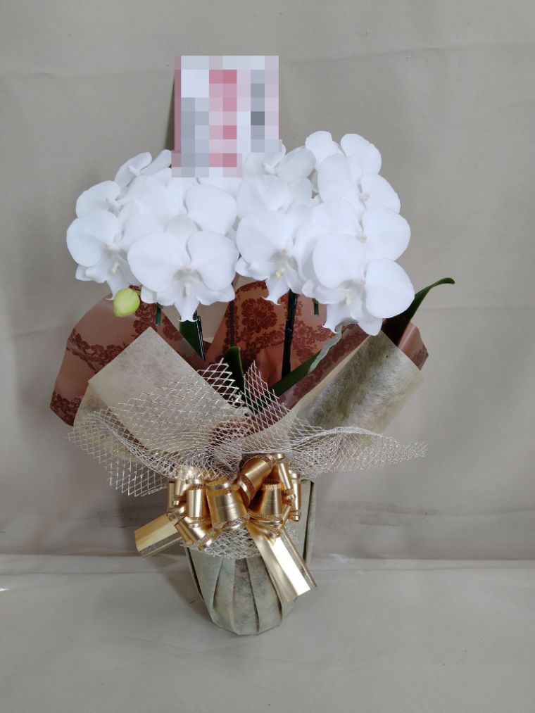 胡蝶蘭の実際にお届けした写真です。花秘書では発送前に写真をメールで送信致しますので安心して大切な顧客や取引様へのギフトにご利用頂けます。