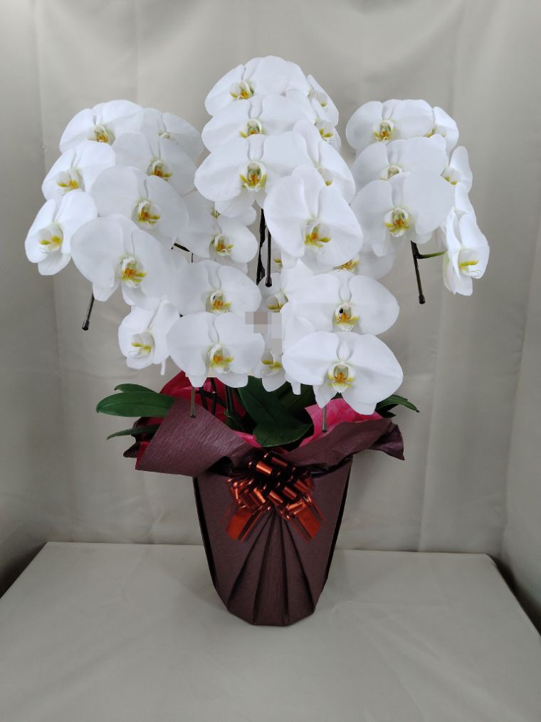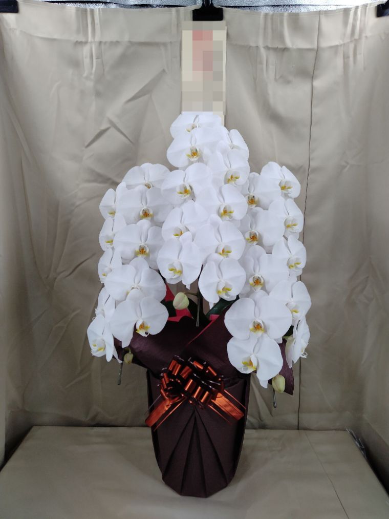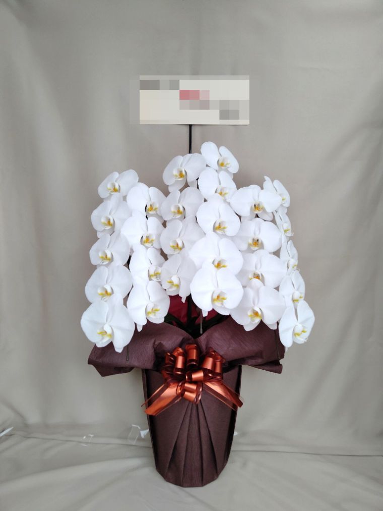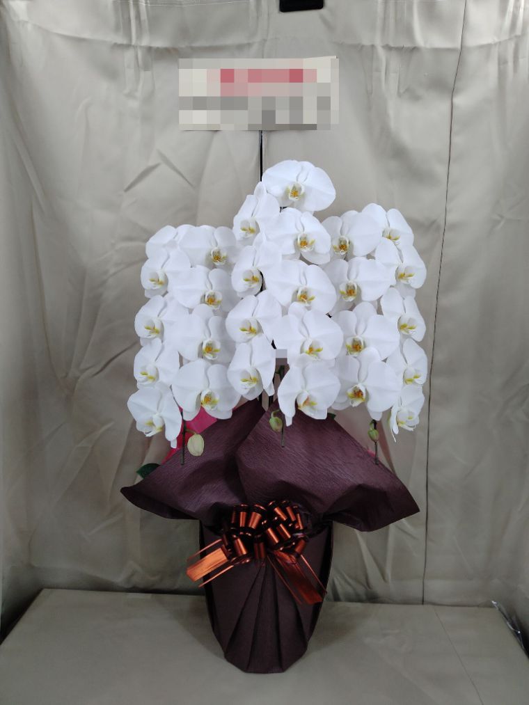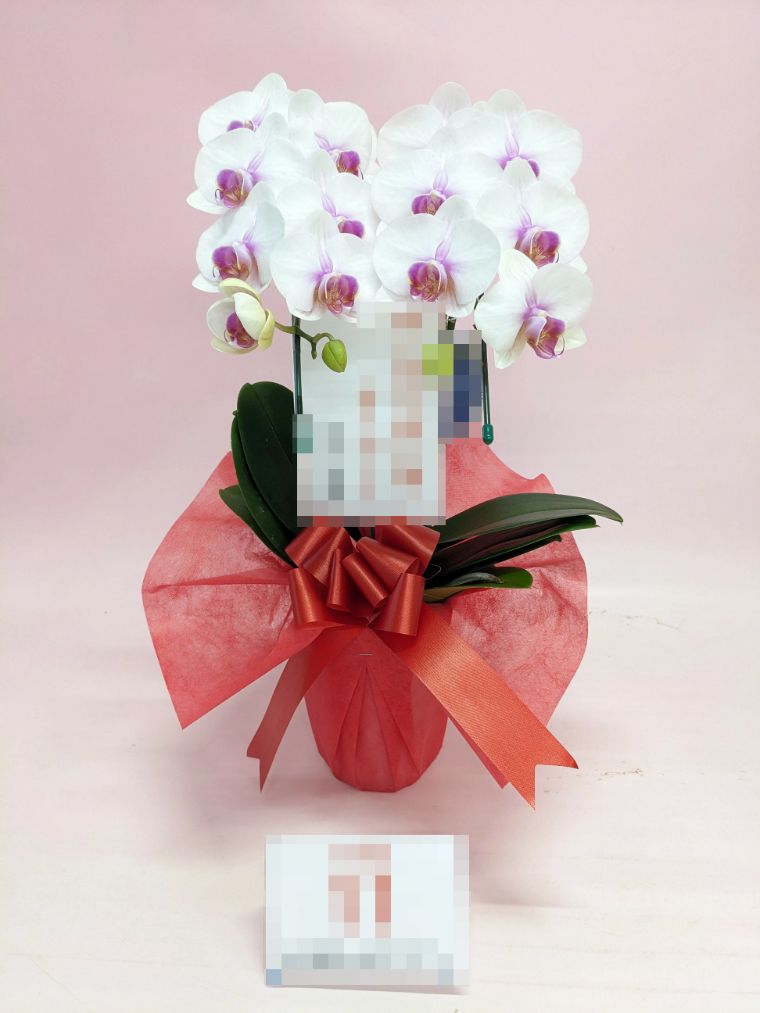 胡蝶蘭の実際にお届けした写真です。花秘書では発送前に写真をメールで送信致しますので安心して大切な顧客や取引様へのギフトにご利用頂けます。