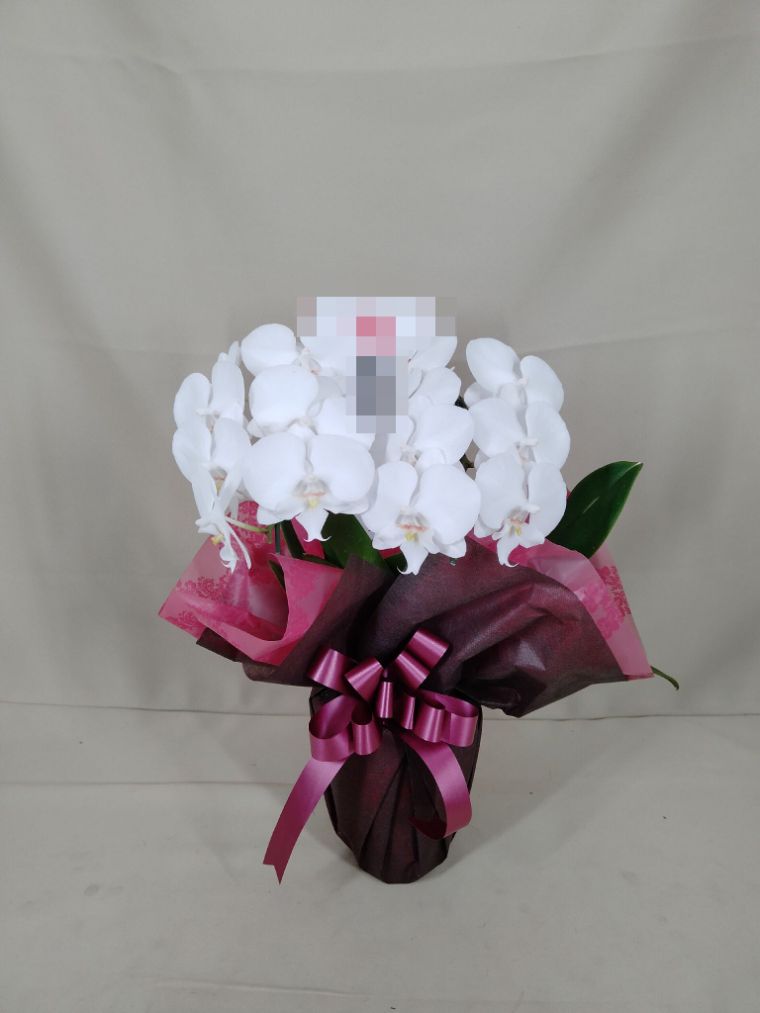 胡蝶蘭の実際にお届けした写真です。花秘書では発送前に写真をメールで送信致しますので安心して大切な顧客や取引様へのギフトにご利用頂けます。