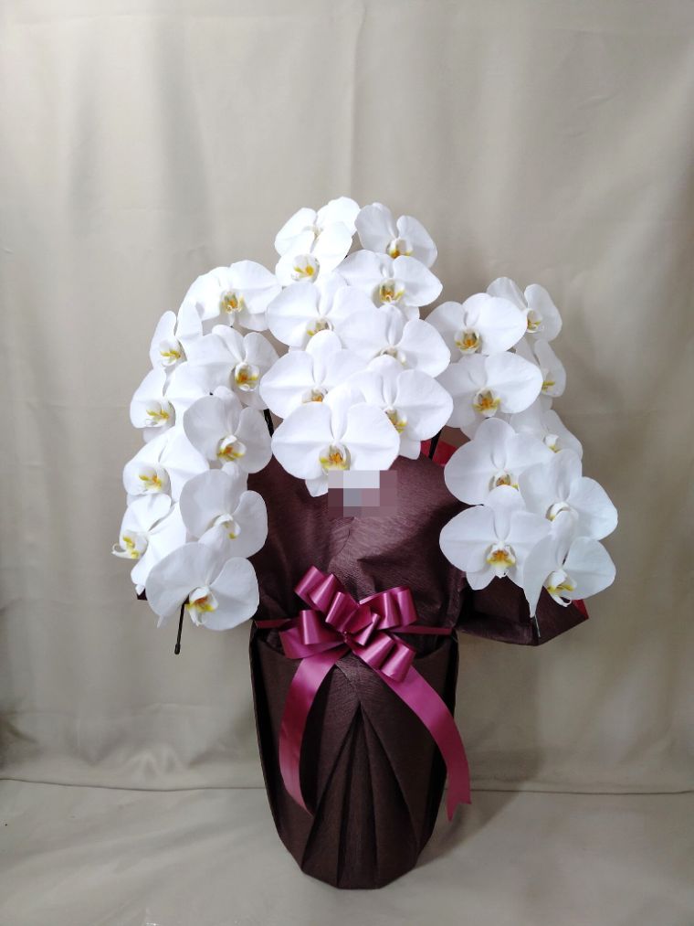 胡蝶蘭の実際にお届けした写真です。花秘書では発送前に写真をメールで送信致しますので安心して大切な顧客や取引様へのギフトにご利用頂けます。