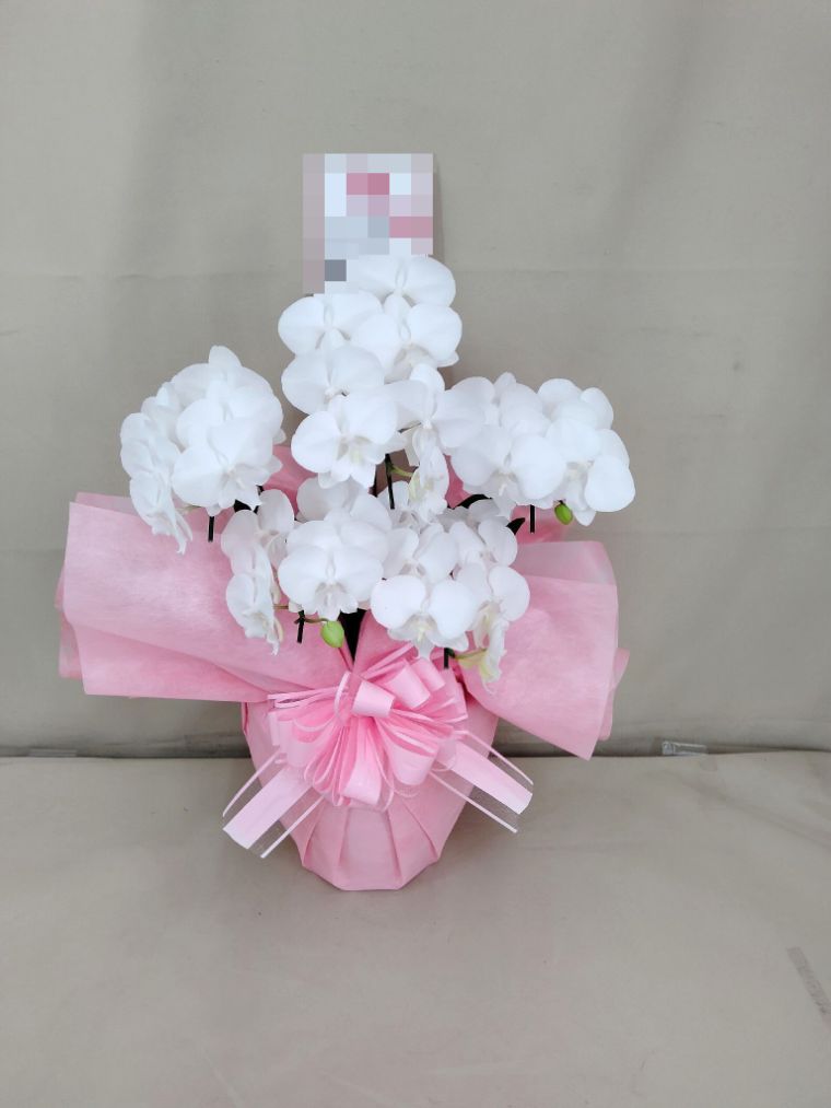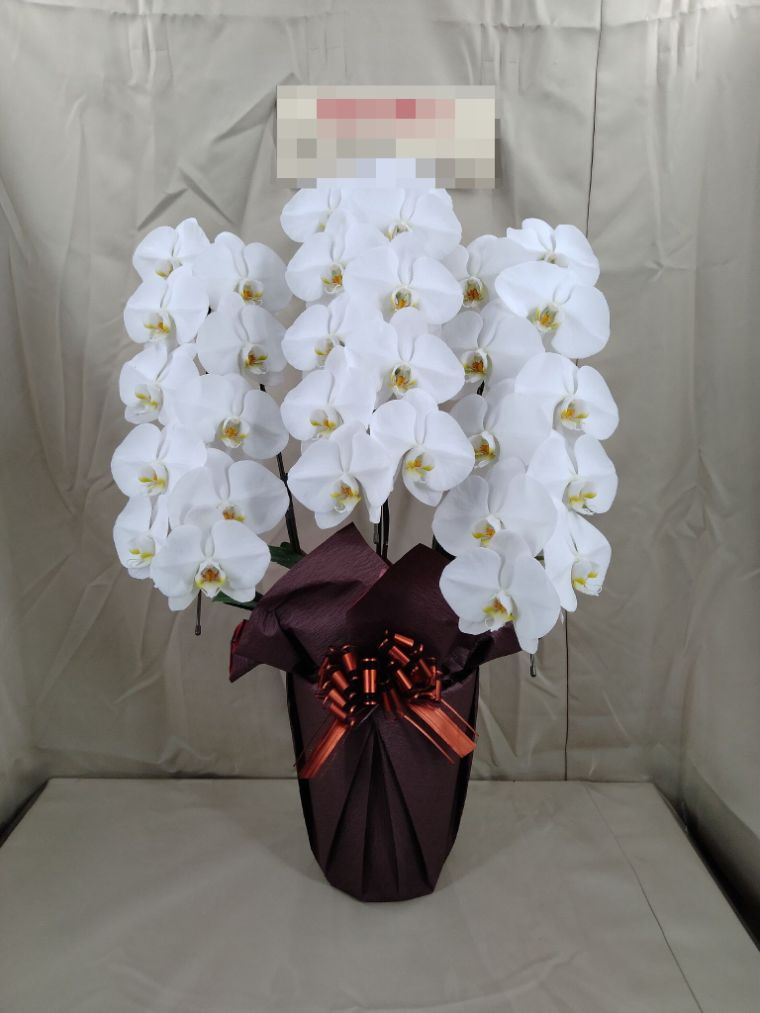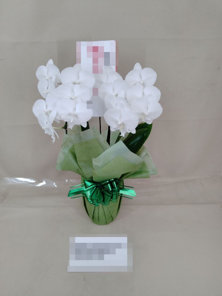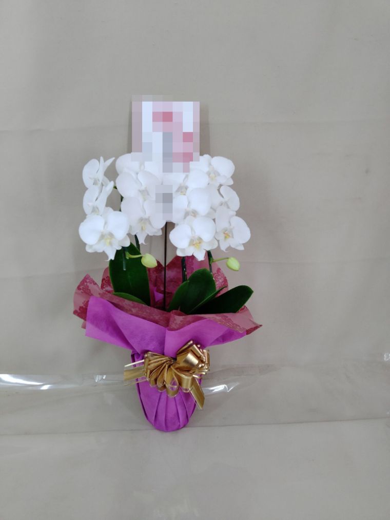 胡蝶蘭の実際にお届けした写真です。花秘書では発送前に写真をメールで送信致しますので安心して大切な顧客や取引様へのギフトにご利用頂けます。