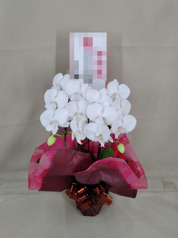 胡蝶蘭の実際にお届けした写真です。花秘書では発送前に写真をメールで送信致しますので安心して大切な顧客や取引様へのギフトにご利用頂けます。