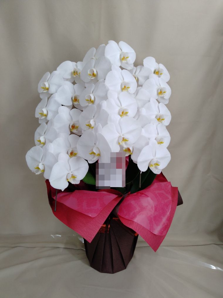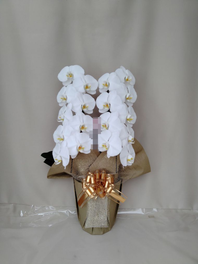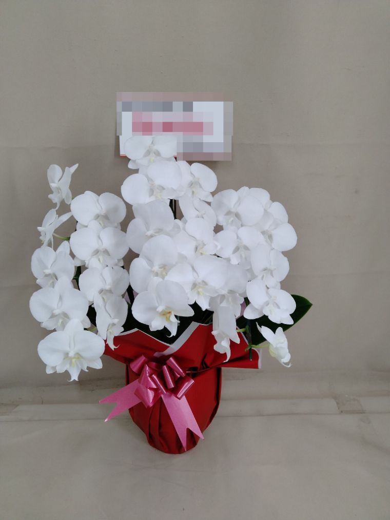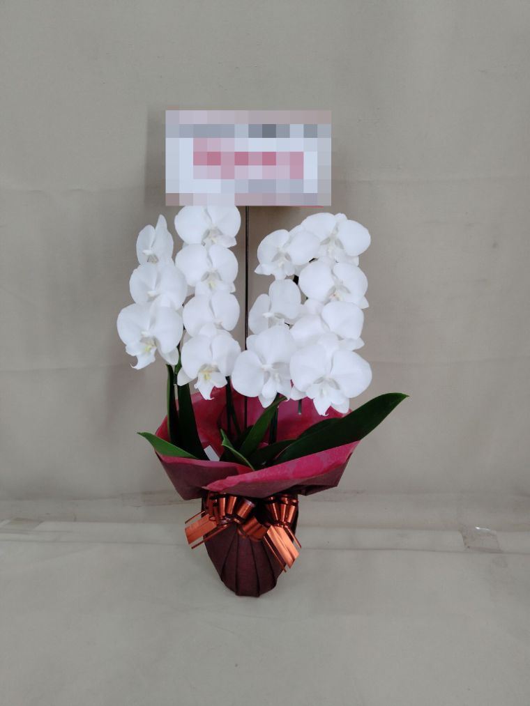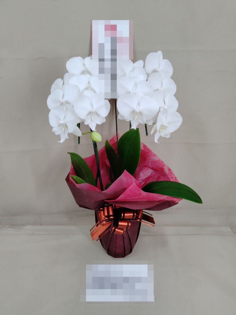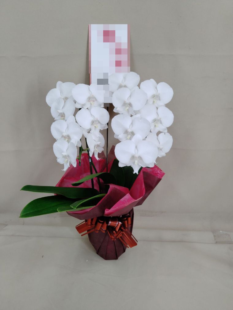 胡蝶蘭の実際にお届けした写真です。花秘書では発送前に写真をメールで送信致しますので安心して大切な顧客や取引様へのギフトにご利用頂けます。