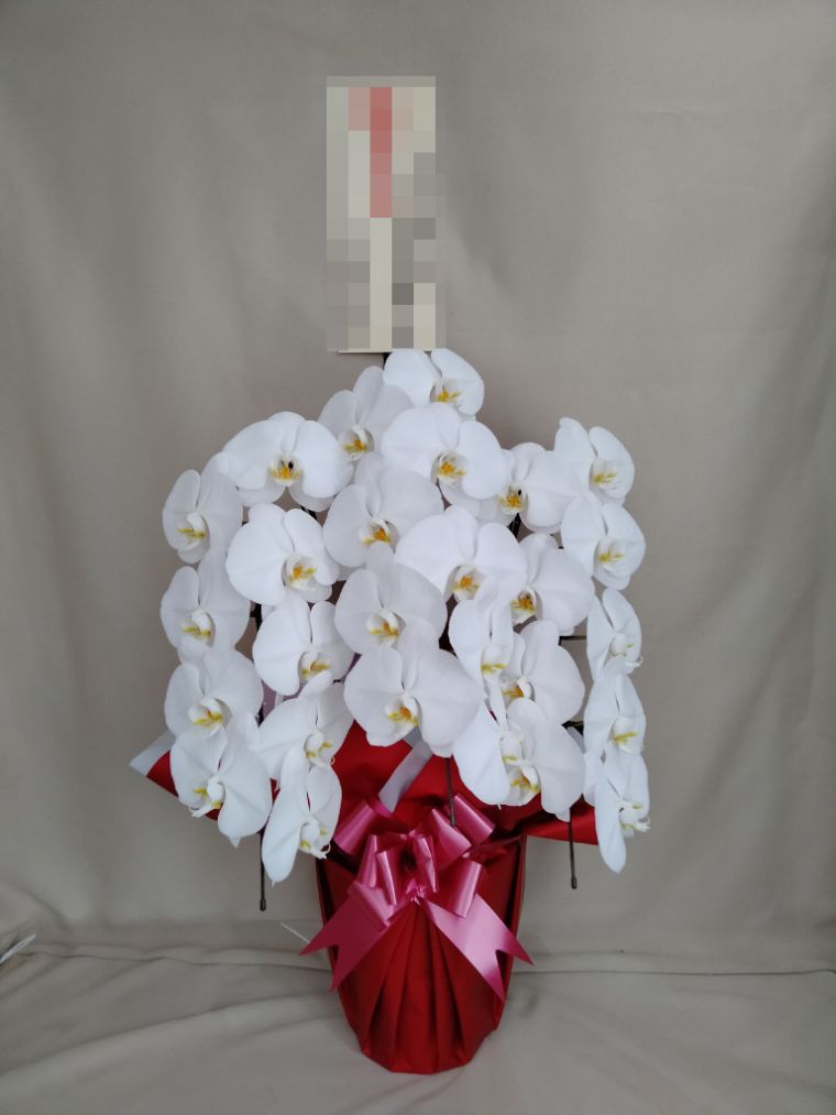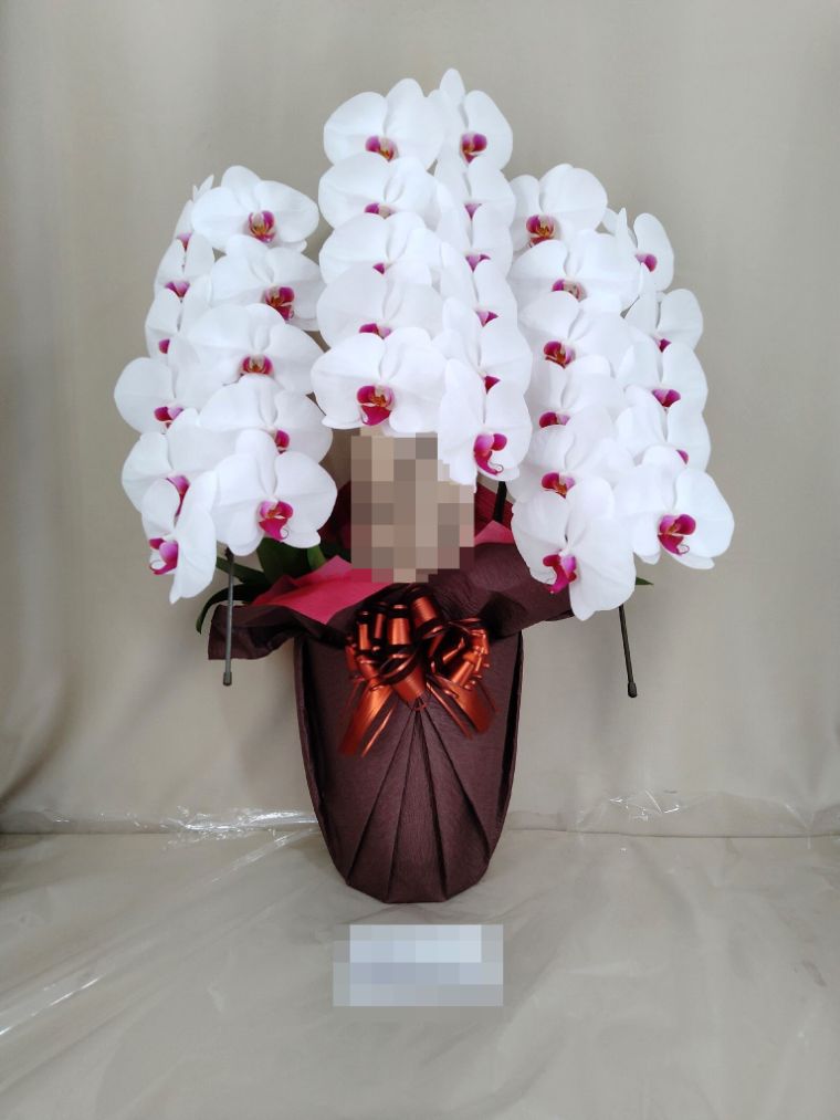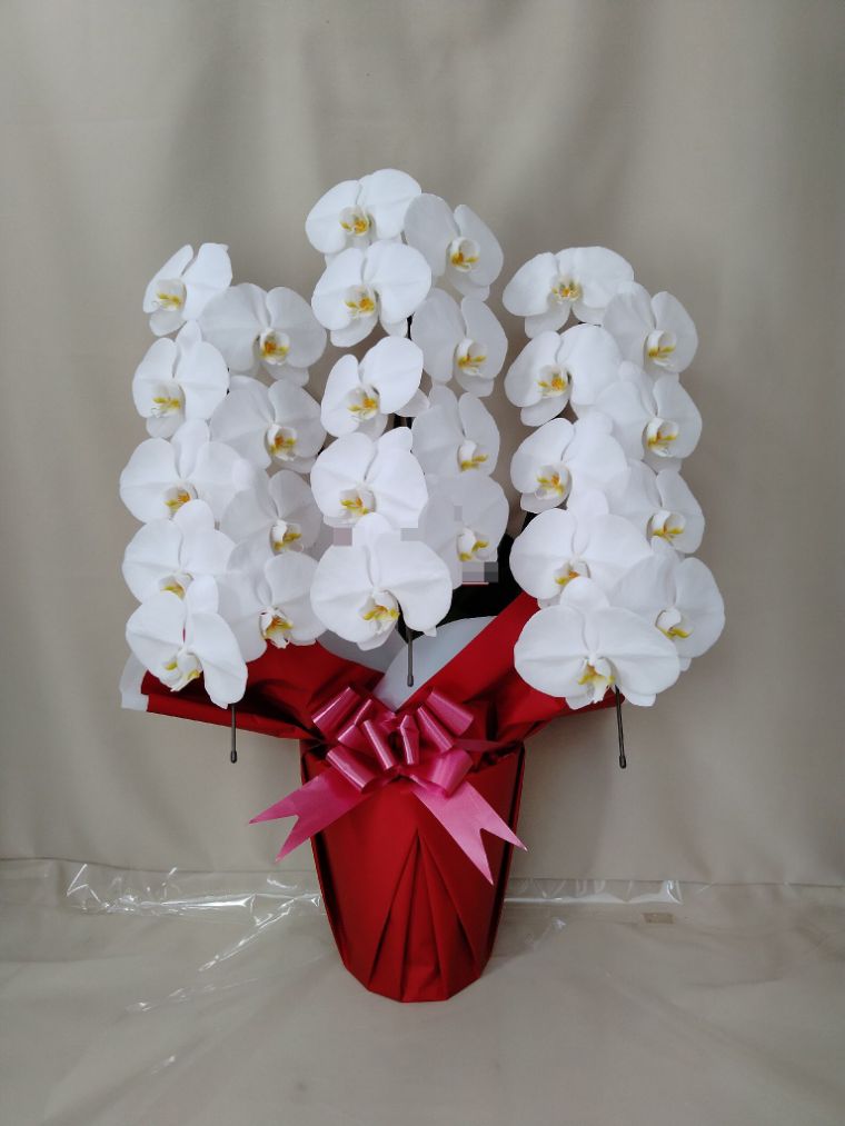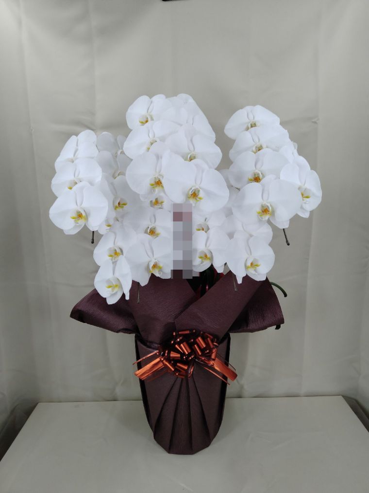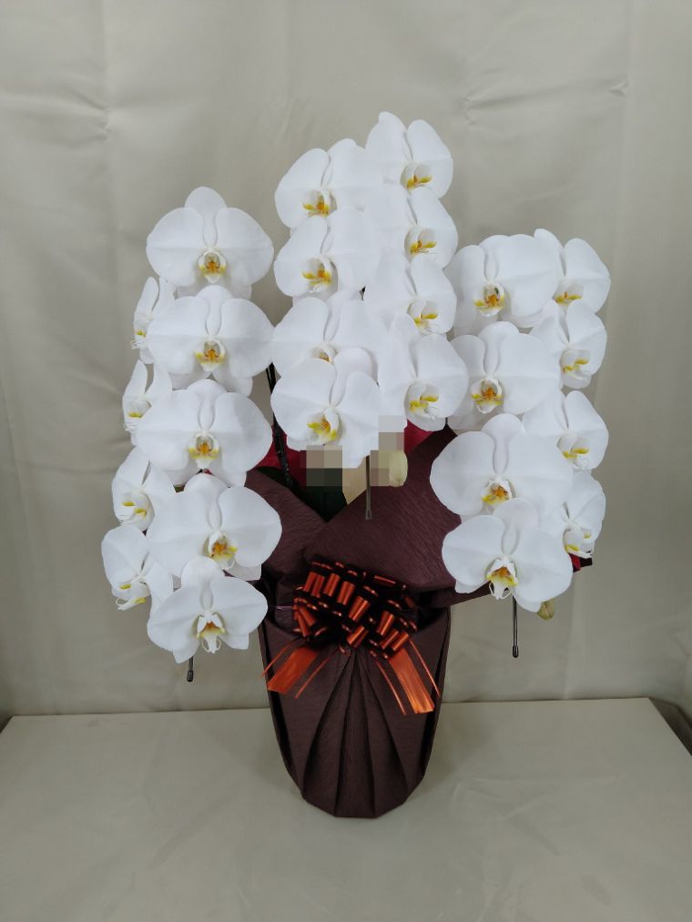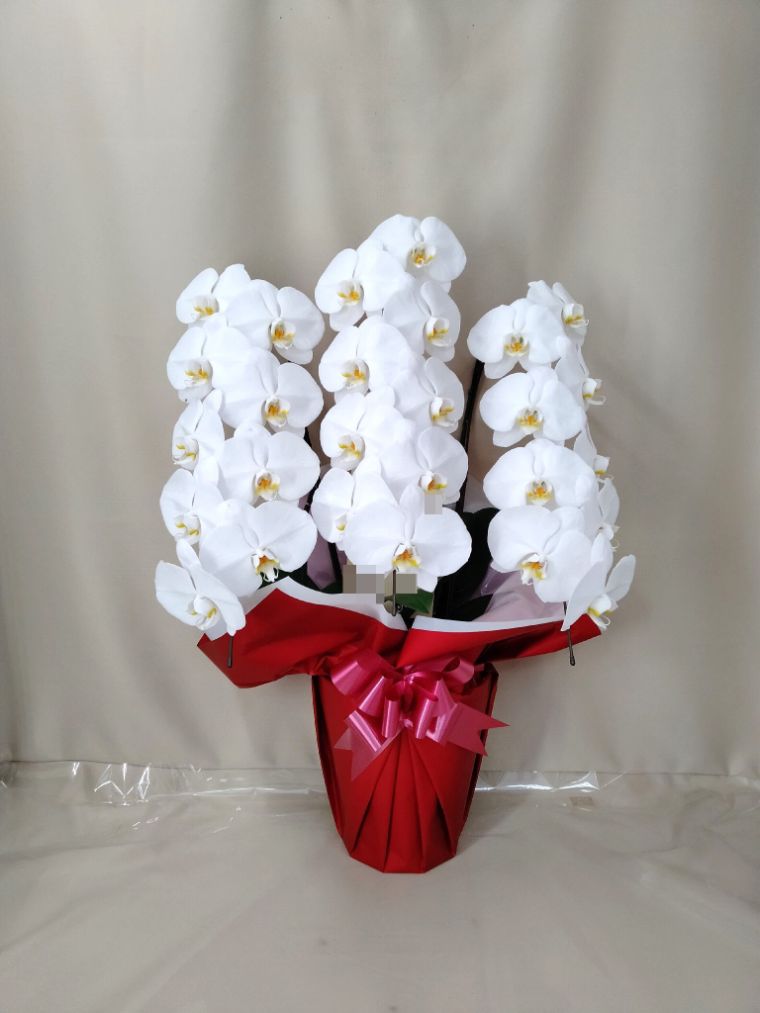 胡蝶蘭の実際にお届けした写真です。花秘書では発送前に写真をメールで送信致しますので安心して大切な顧客や取引様へのギフトにご利用頂けます。